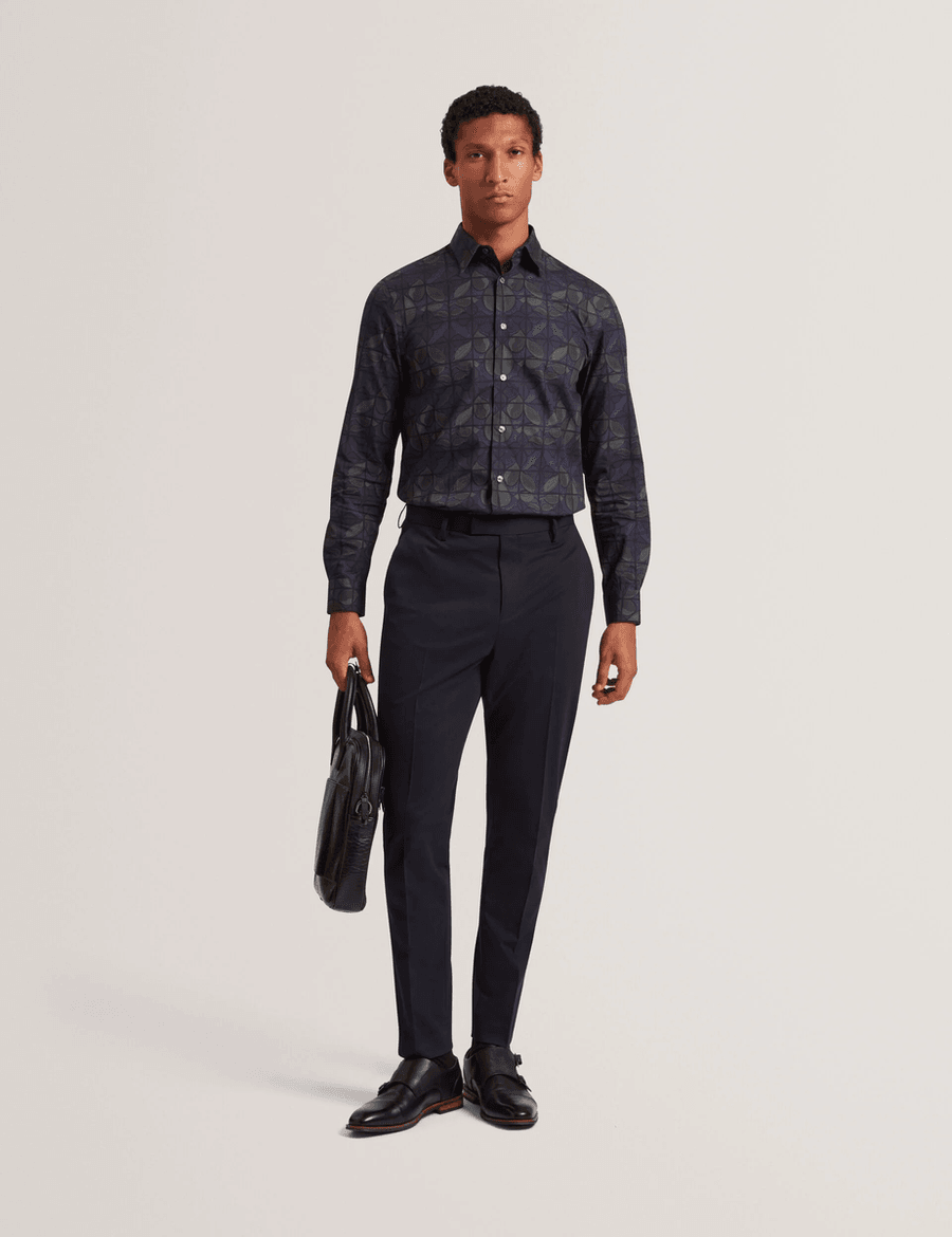 اكتشف المزيج المثالي من الراحة والأناقة مع تيود بيكر ميريكت | البحرية بنطلون ضيق. مصنوع من قماش نسيج تقني عالي الجودة، يوفر هذا البنطلون لمسة مرنة تتحرك معك، مما يجعله مثاليًا للمناسبات المهنية وغير الرسمية.