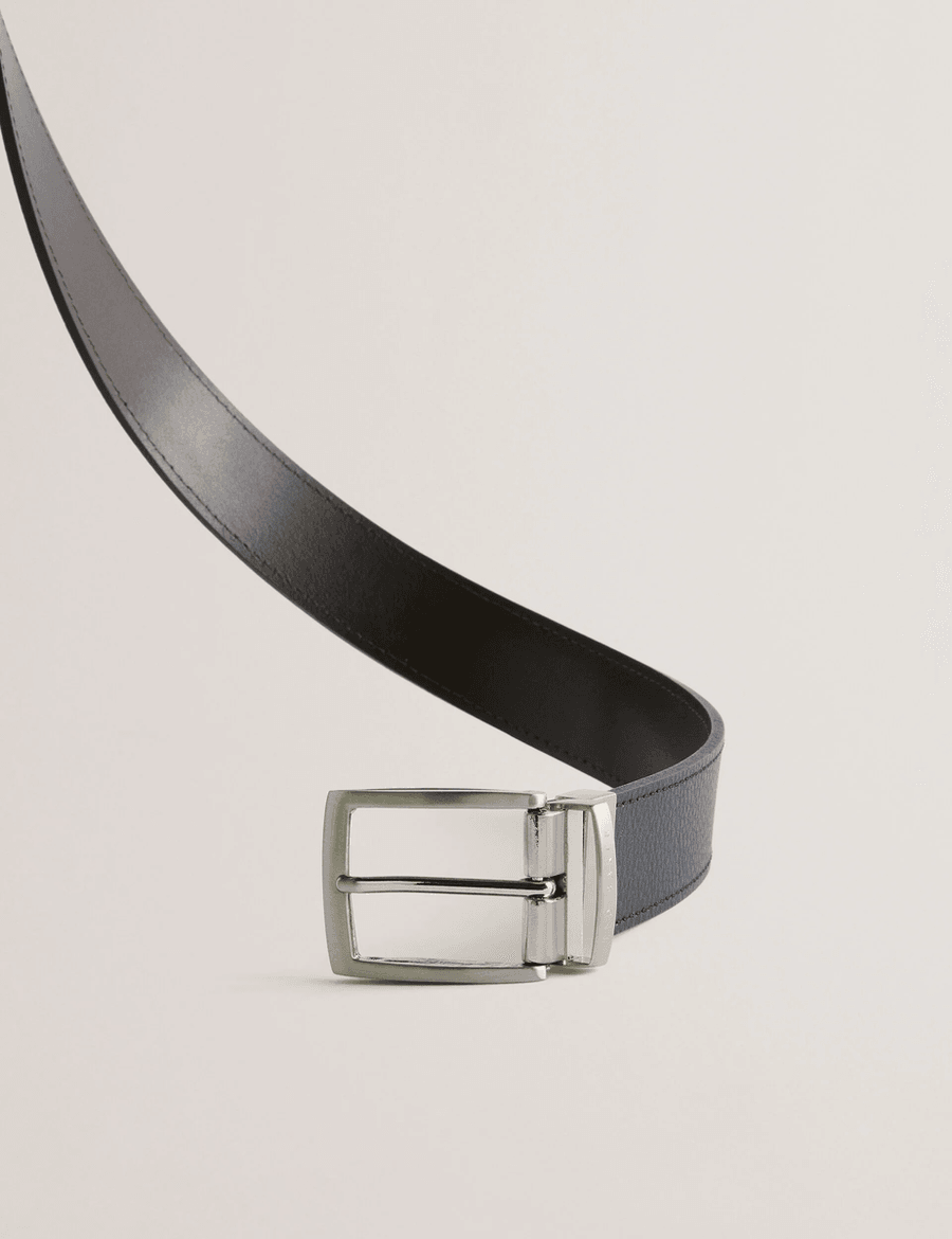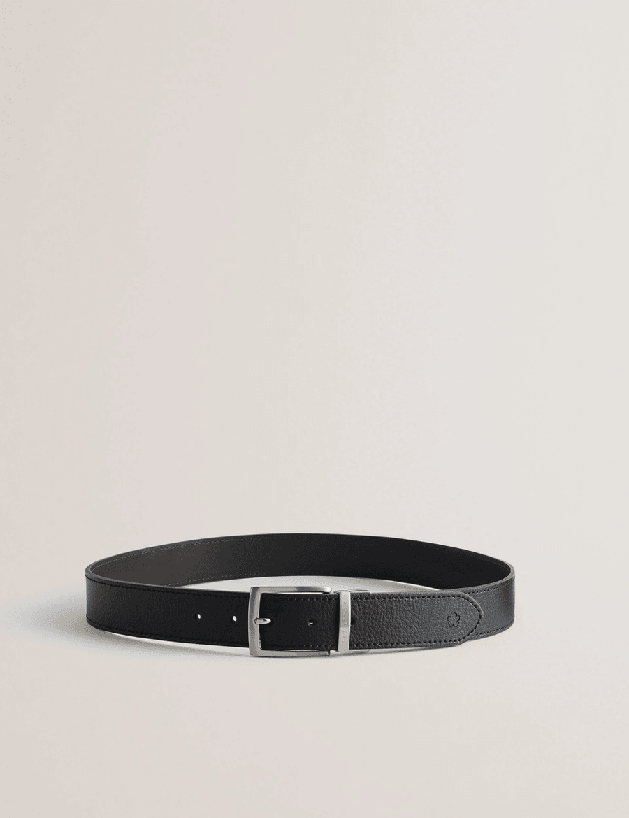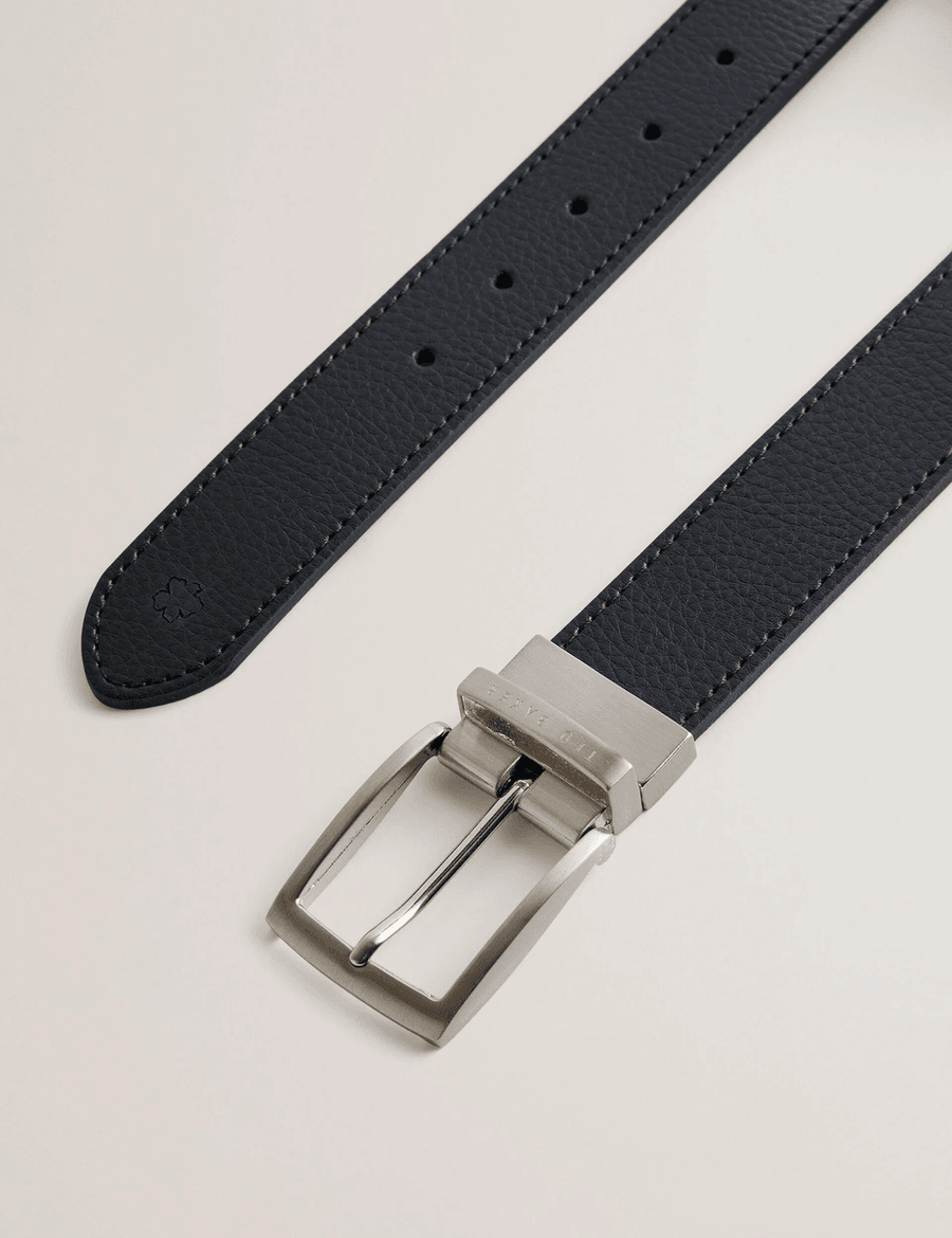 Elevate your style with the Ted Baker BREEMER | BLACK, a versatile reversible belt designed for the modern gentleman. Crafted from premium grained texture leather and polished leather, this belt seamlessly transitions from casual to formal wear.
