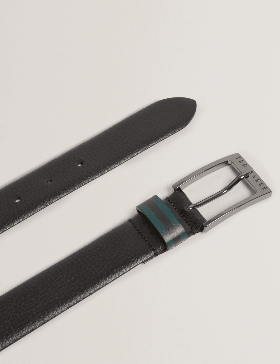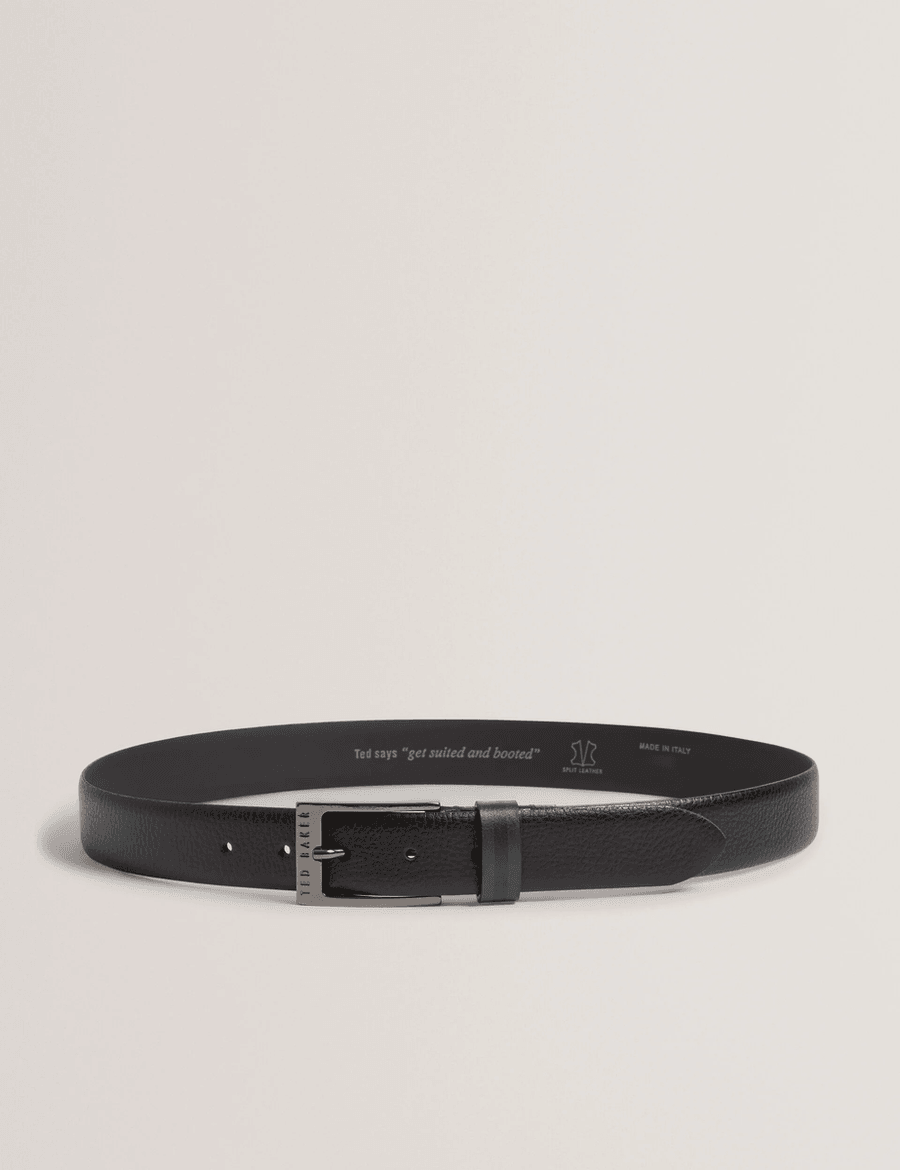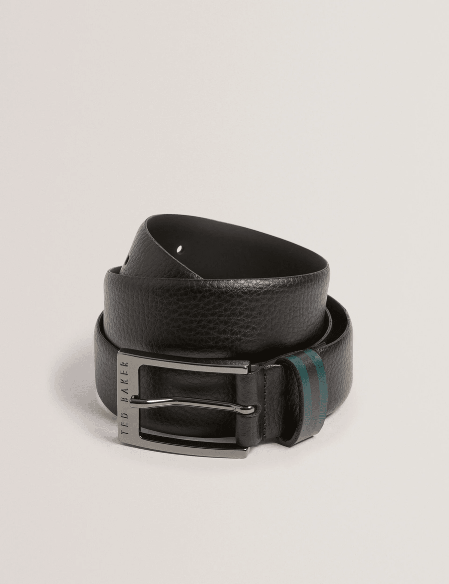 Discover the perfect blend of sophistication and functionality with the Ted Baker KENDON | BLACK belt. Crafted from premium black split leather, this accessory adds a touch of elegance to any outfit. With its unique grained texture and stylish block stripe, the KENDON belt is designed for those who appreciate quality and style.