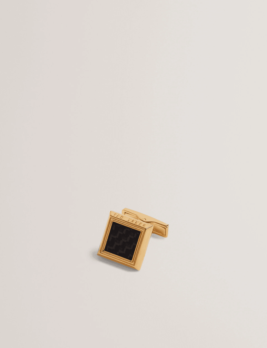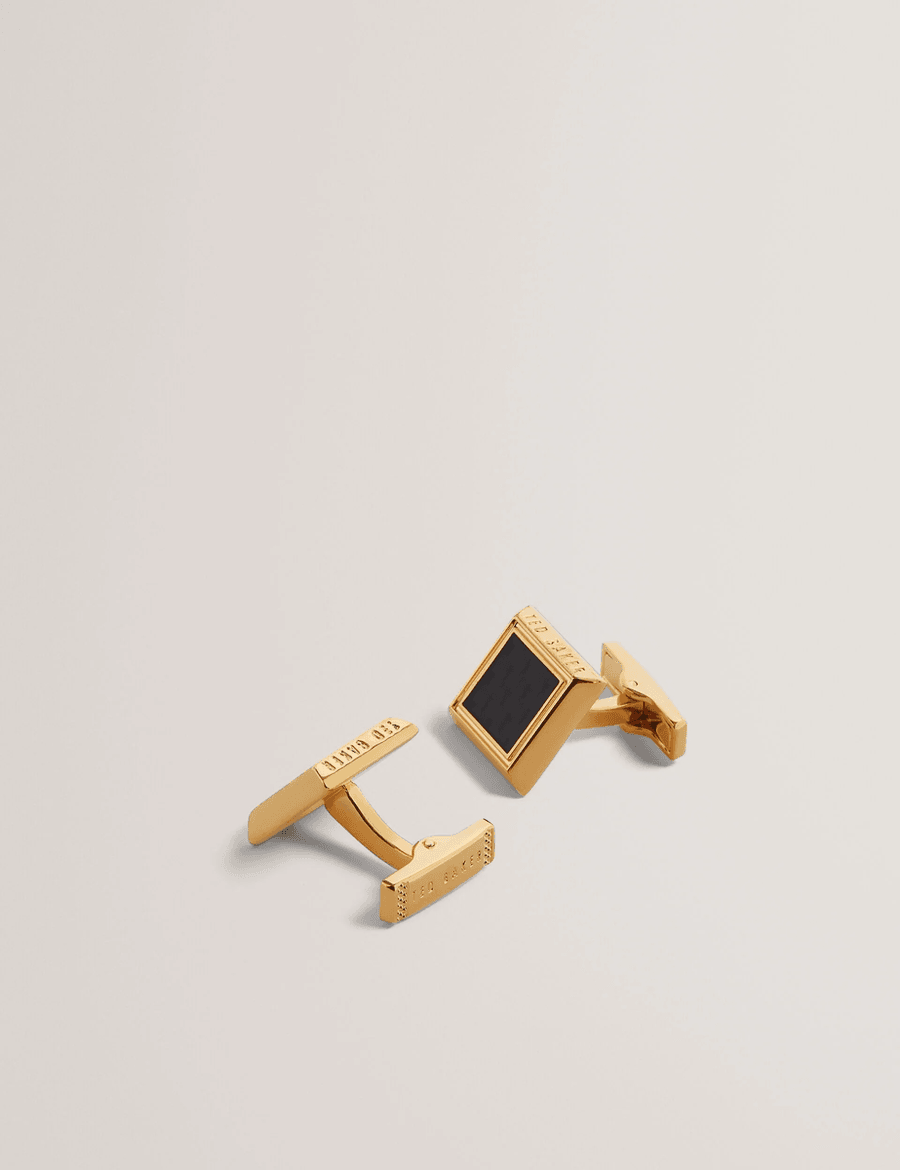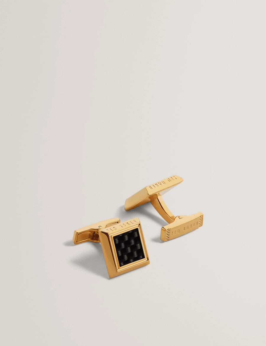 The Ted Baker CARDER | GOLD cufflinks are more than just an accessory; they are a statement piece that enhances any formal outfit. The combination of black carbon fibre and shiny gold tone plating creates a luxurious contrast that catches the eye. Ideal for weddings, business meetings, or any special occasion, these cufflinks will complement your style and leave a lasting impression.