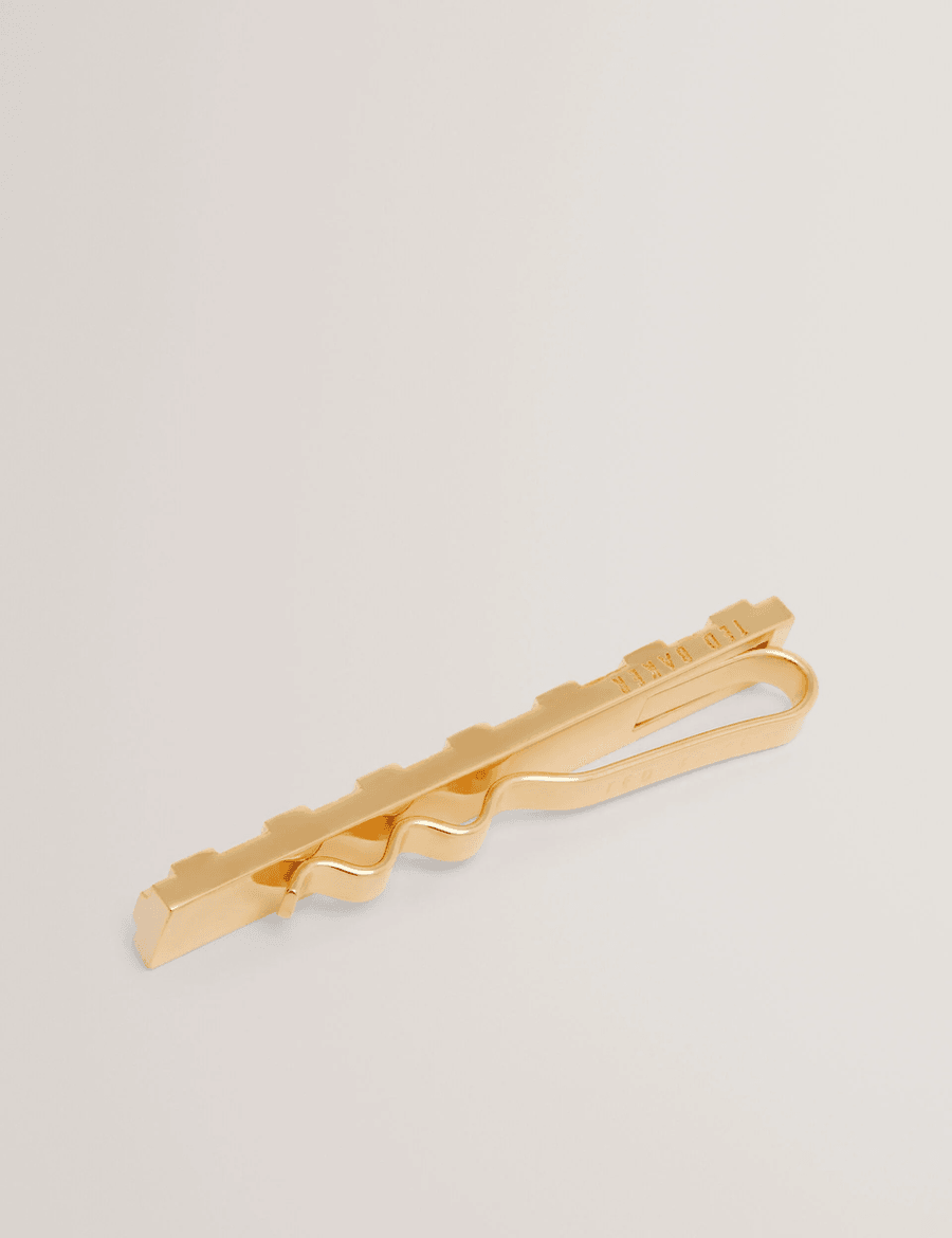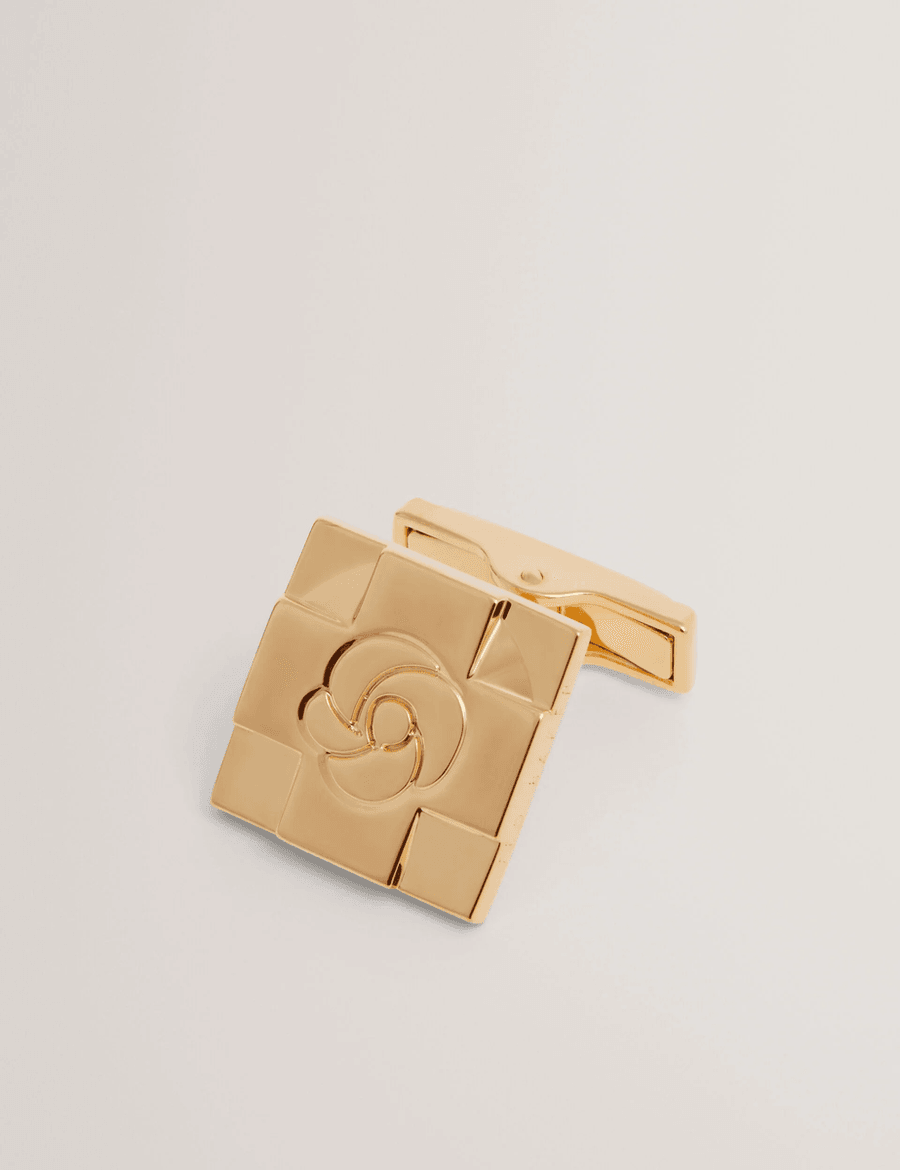 Discover the exquisite Ted Baker ROSEMEL | GOLD-COL cufflinks and tie bar set, designed to add a touch of sophistication to any ensemble. Crafted with a matte finish in gold-tone metal, this set features a stunning 3D textured design that is sure to catch the eye.