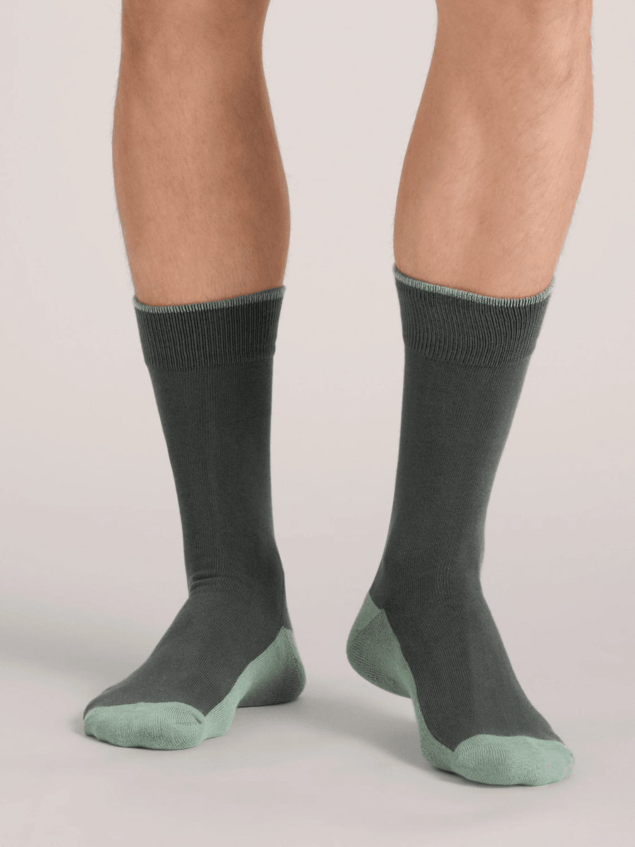 With their sleek two-tone design and block color sole, these socks are not only practical but also a fashion statement. The ribbed cuffs ensure they stay in place, while the printed logo adds a dash of elegance to your everyday look.