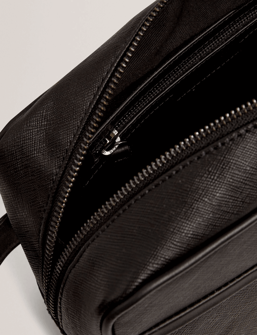 Elevate your travel experience with the Ted Baker SAMBERG | BLACK washbag. Crafted from luxurious saffiano texture leather, this stylish accessory combines functionality with a touch of elegance. Perfect for keeping your grooming essentials organized, the Ted Baker SAMBERG | BLACK is a must-have for the modern traveler.