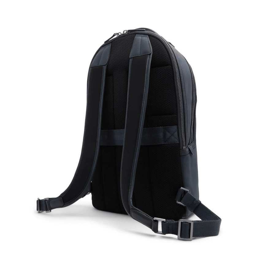 The Ted Baker XADEN | NAVY backpack features dimensions of 45cm x 30cm x 19cm, making it spacious yet compact enough for daily use. Crafted from durable nylon with luxurious leather accents, this backpack is built to withstand the rigors of daily life while keeping you stylish. The padded mesh back ensures comfort, making it ideal for long commutes or weekend adventures.