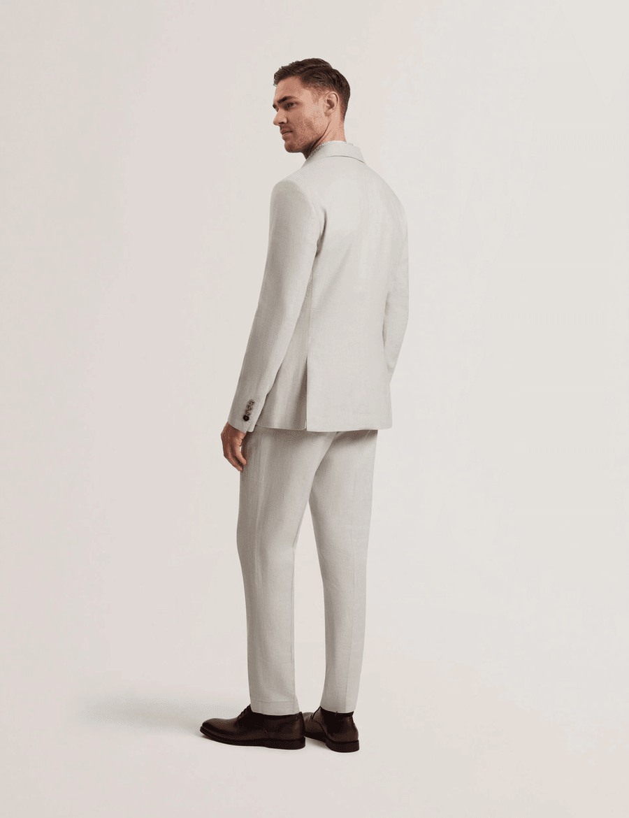The Ted Baker KENLEYJ is crafted from a premium linen-cotton blend, ensuring you stay cool and stylish in any setting. Whether you're dressing for a business meeting or a casual outing, this blazer's versatile design complements a variety of outfits. Model Tobias stands at 6'1" (1.86m) and wears a Ted size 3, showcasing the flattering fit and tailored silhouette.