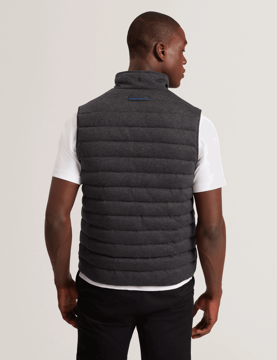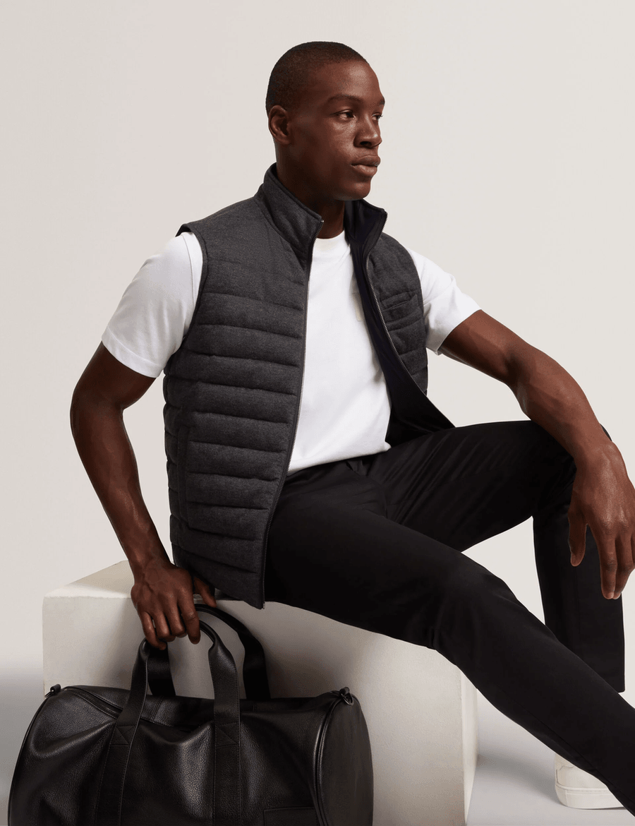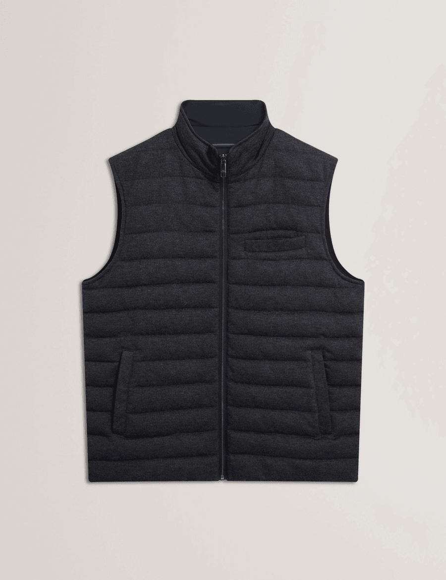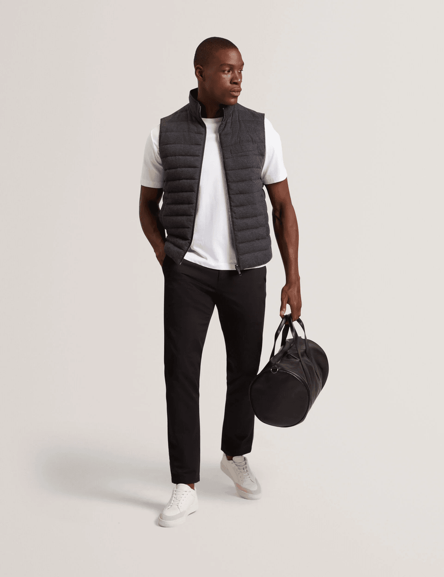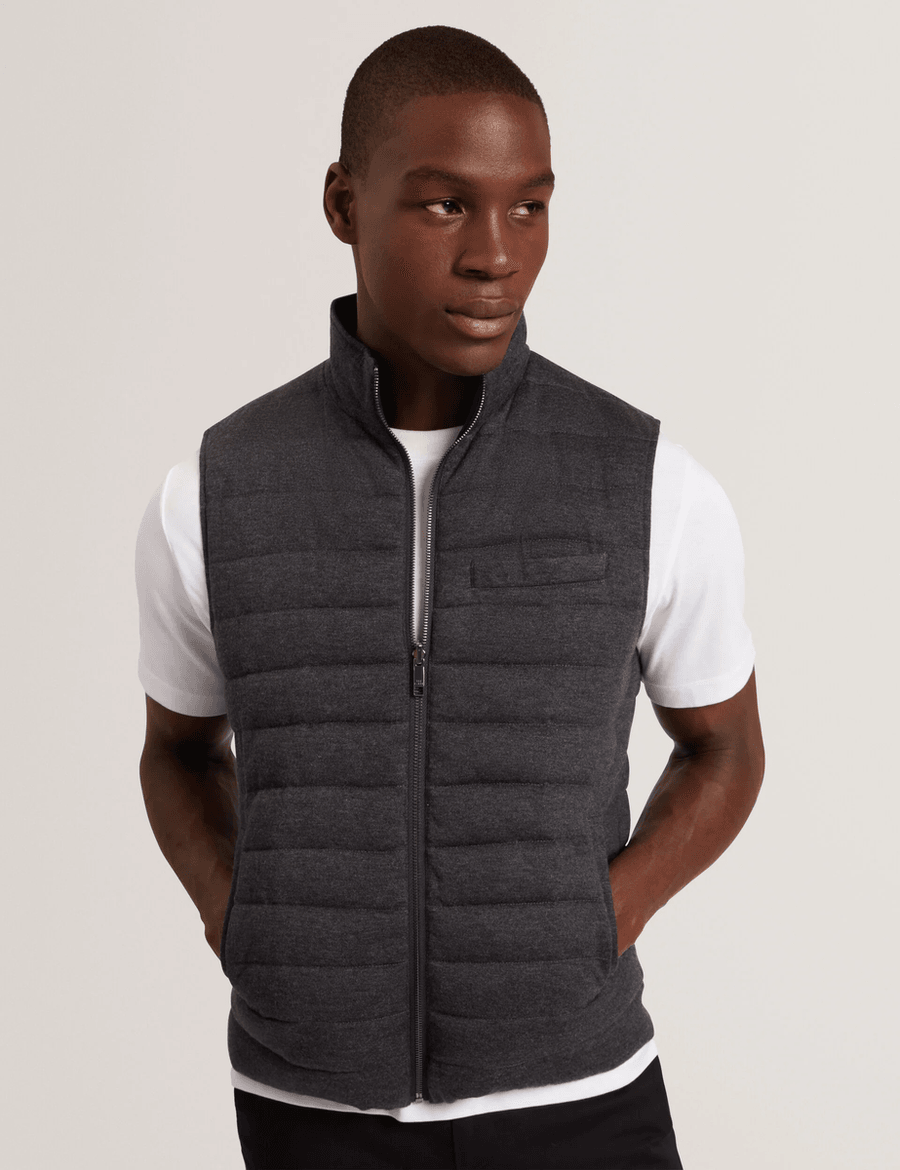 Discover the perfect blend of style and functionality with the Ted Baker DOPPEL | CHARCOAL sleeveless gilet. This lightweight, quilted design is an essential addition to your wardrobe, providing warmth without the bulk. Whether you're dressing up for a night out or layering for a casual day, this gilet is your go-to piece.