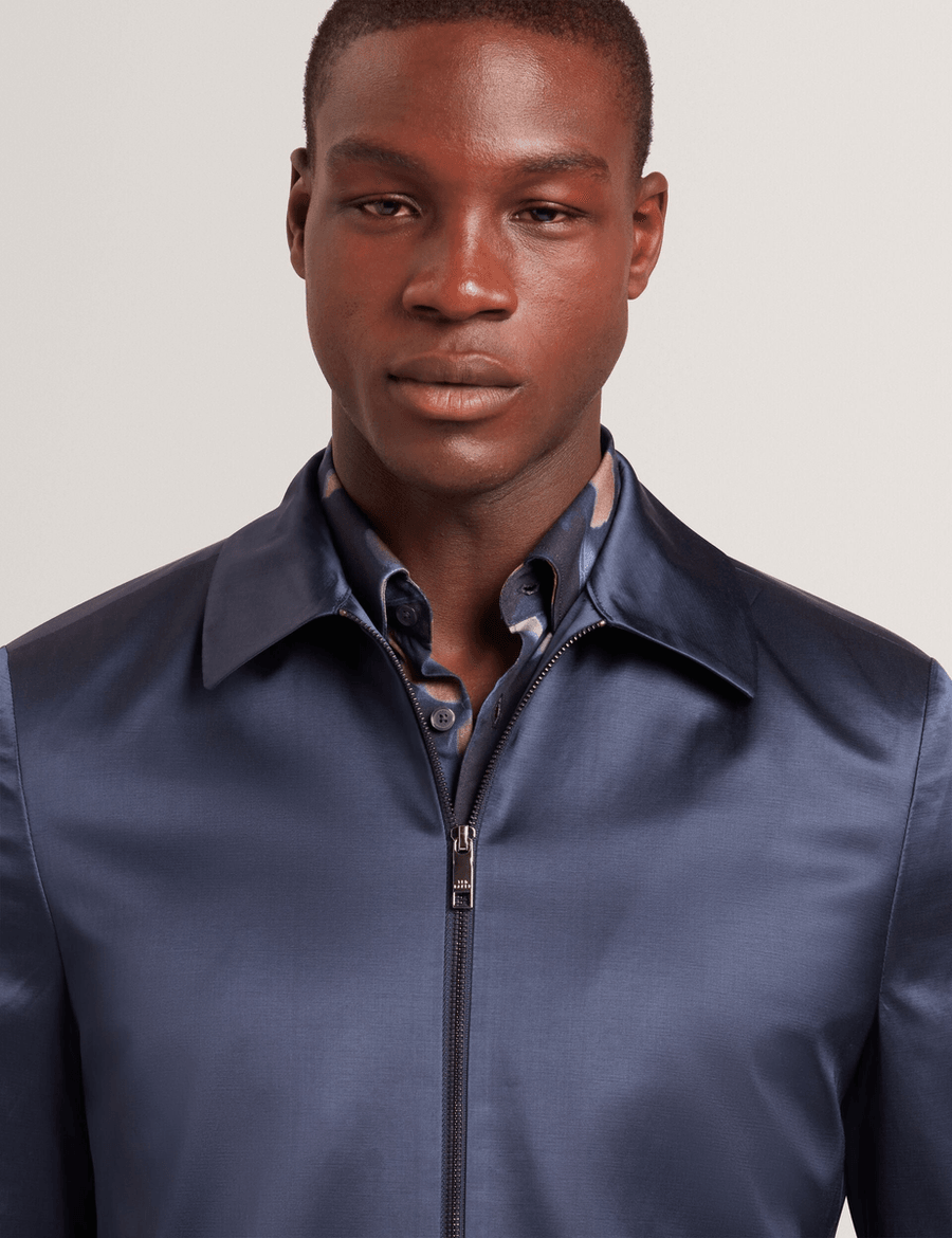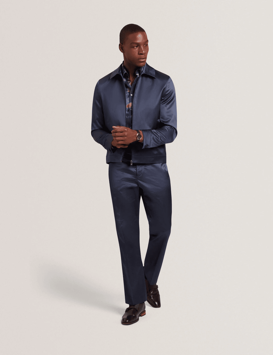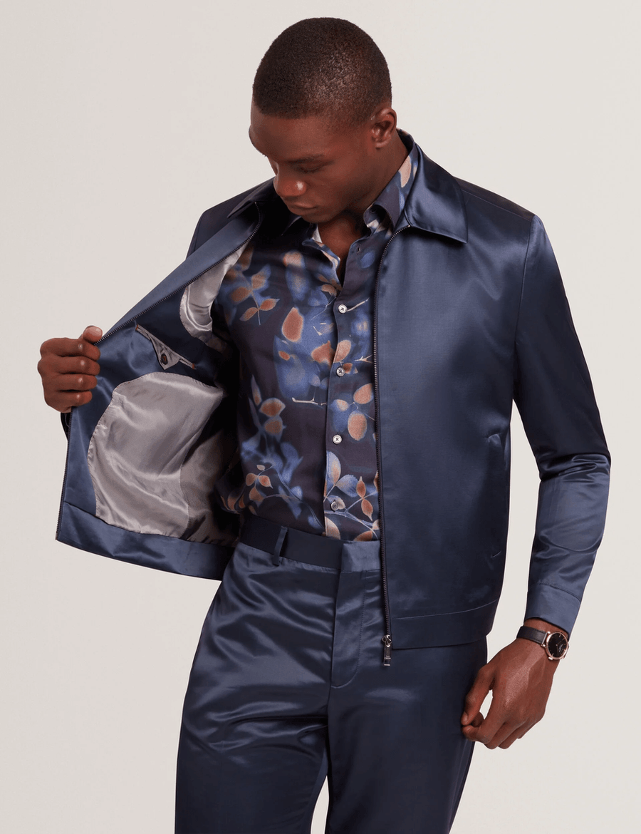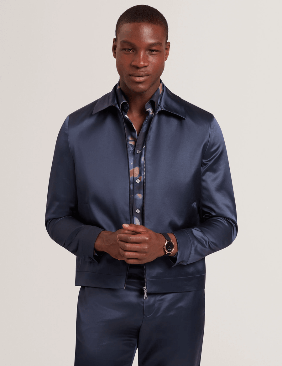 Discover the ultimate blend of sophistication and functionality with the Ted Baker FLUIDJ | NAVY slim Harrington jacket. Designed for the modern man, this jacket features a high-shine finish that sets you apart in any crowd. Whether you're heading to work or going out for the evening, this jacket is your new go-to outerwear piece.