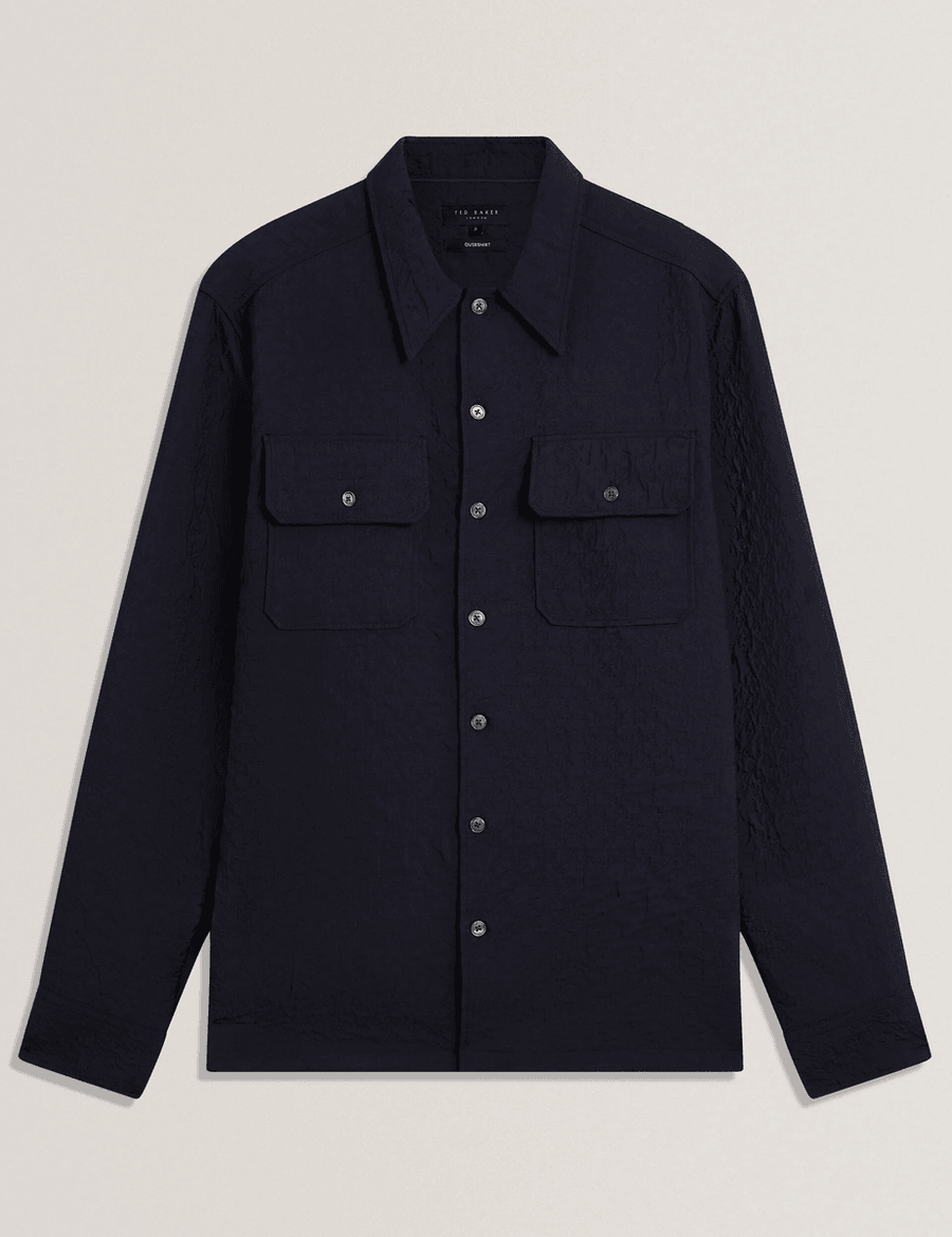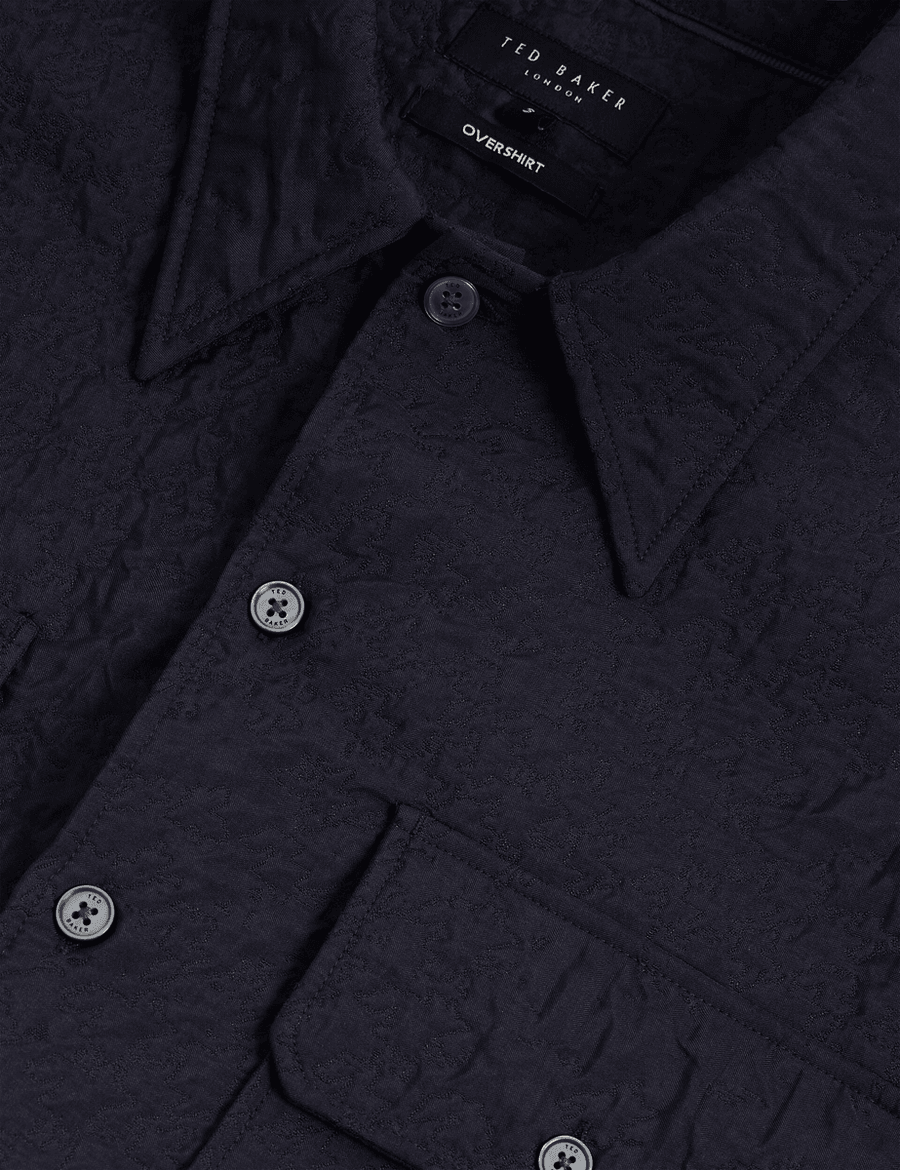 Discover the perfect blend of style and functionality with the Ted Baker GENTIL | NAVY overshirt. Crafted with a jacquard dogtooth texture, this utility-style shirt is designed for modern elegance, making it an essential addition to any fashion-forward man's wardrobe.