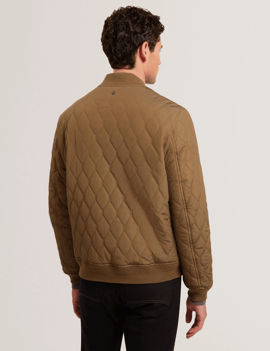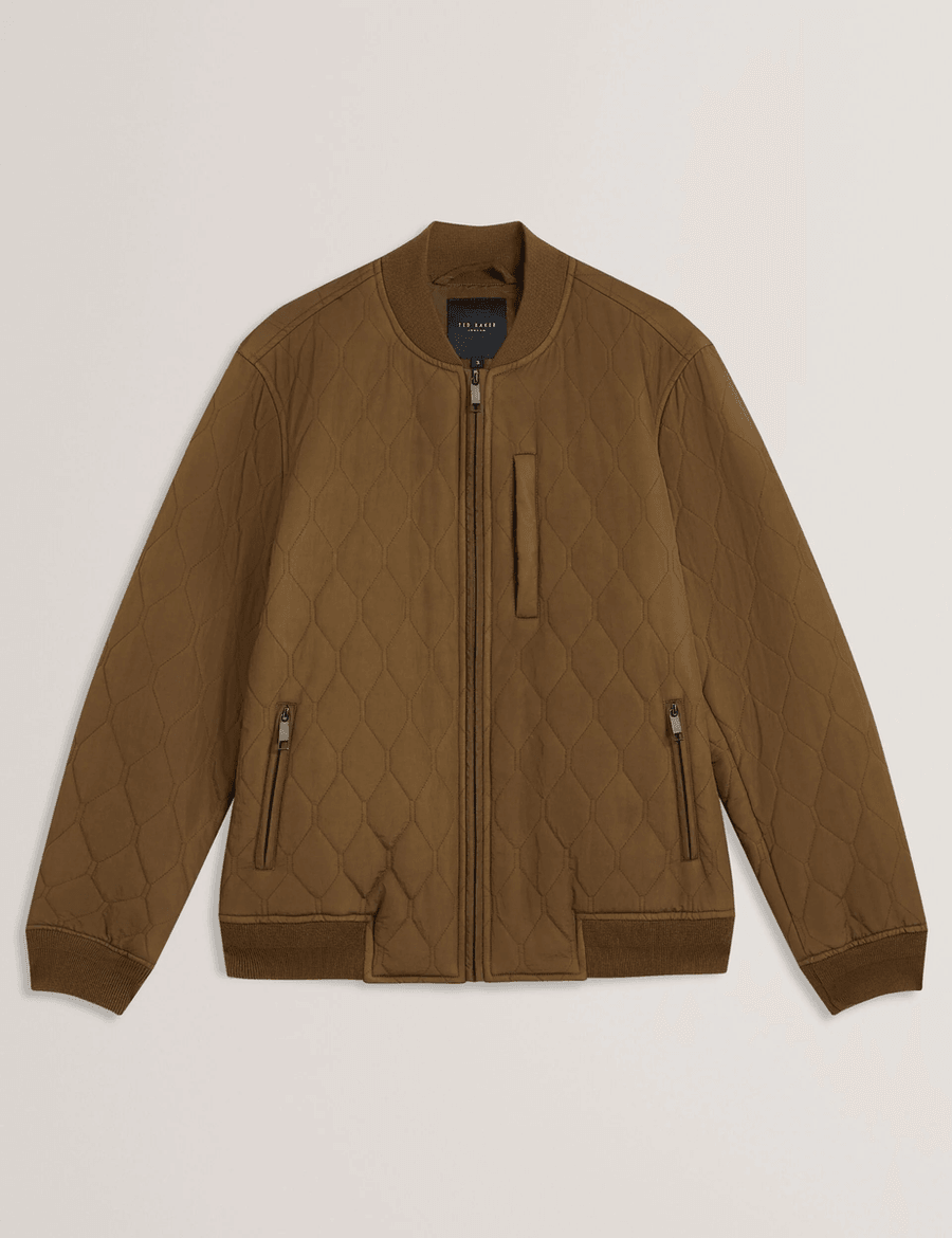 Discover the perfect blend of style and comfort with the Ted Baker MAILINS | OLIVE bomber jacket. This jacket features a unique diamond pattern quilting that not only adds texture but also enhances warmth, making it a must-have for your wardrobe.