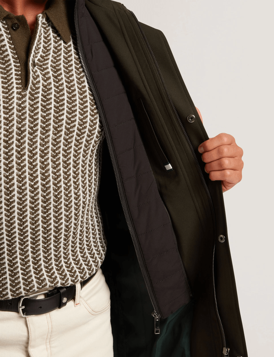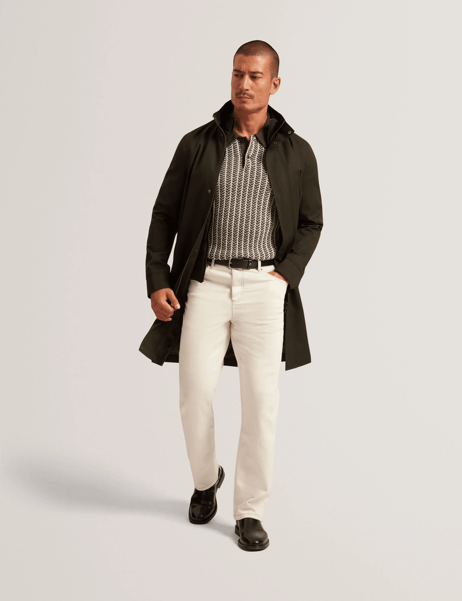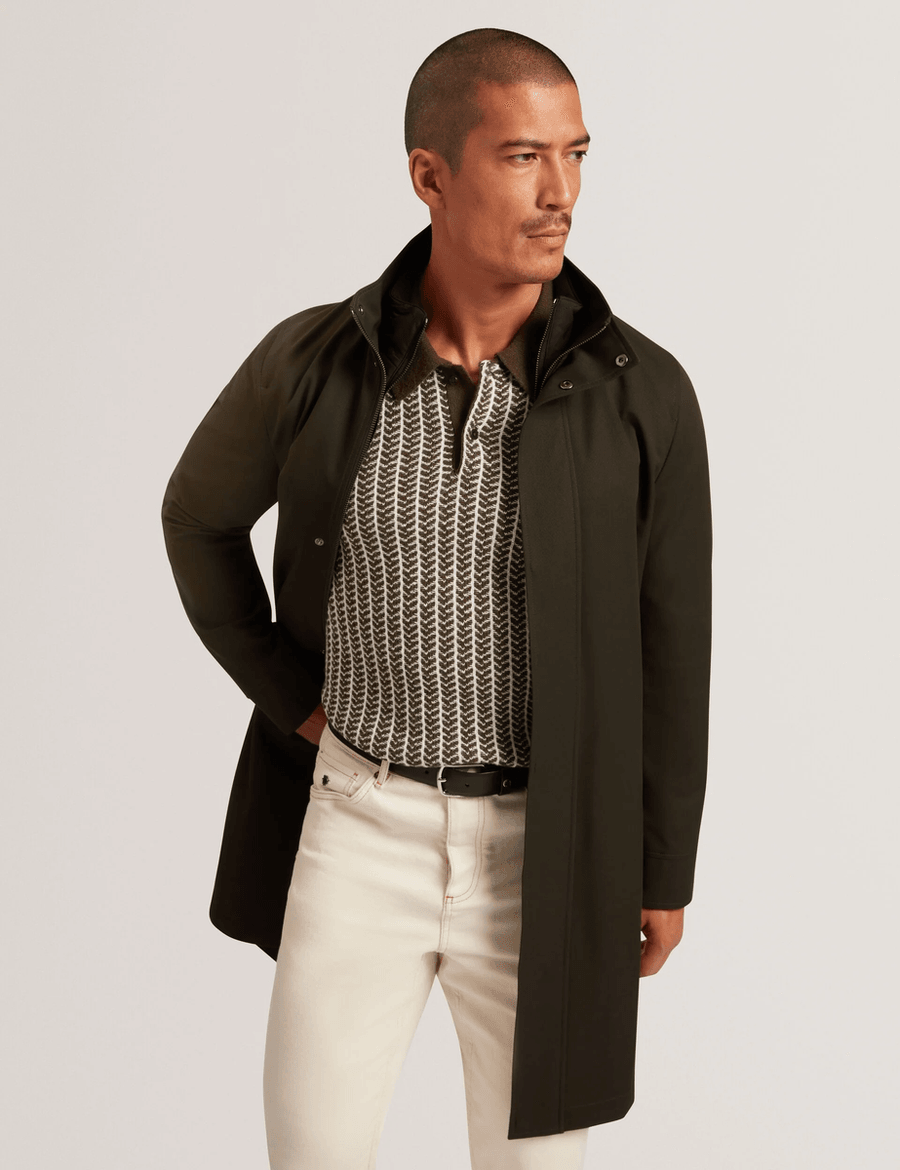 Introducing the Ted Baker RUABON | DK-GREEN—a longline jacket designed for the modern individual who values both style and functionality. This jacket combines a sleek silhouette with practical features, making it the perfect addition to your wardrobe.