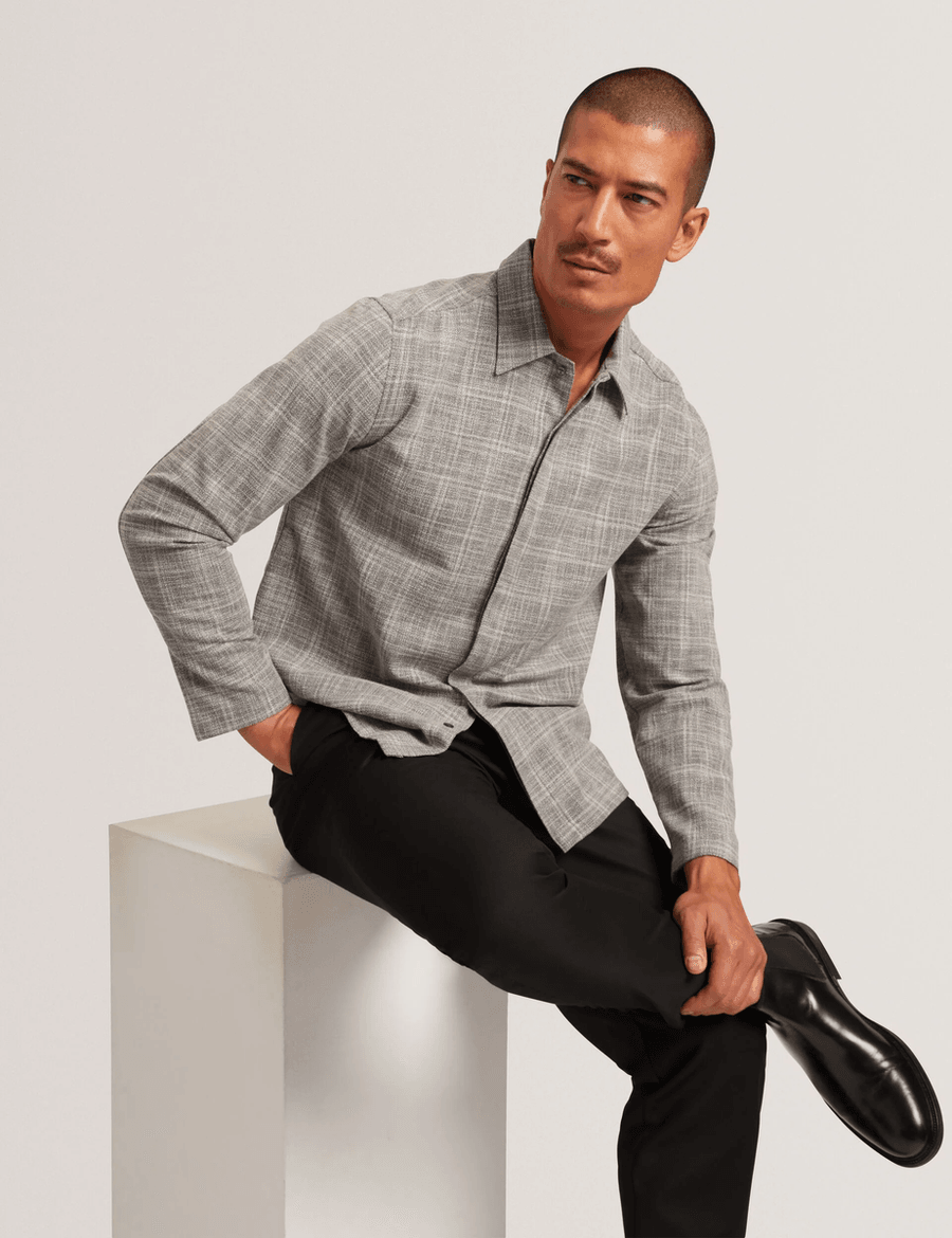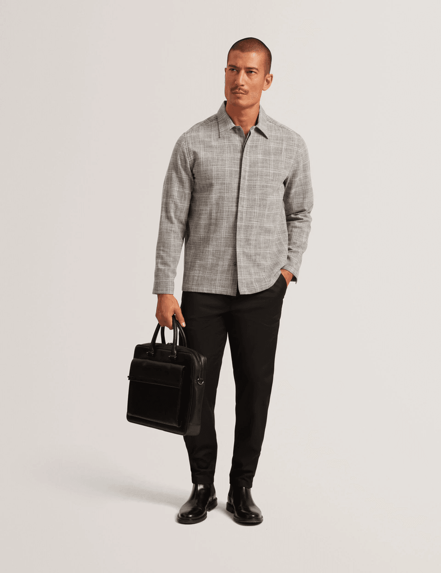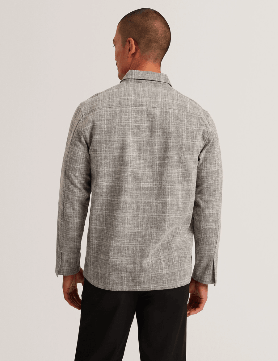 The Ted Baker SIGWIN | STONE showcases a relaxed fit that flatters all body types. With a chic design, it transitions effortlessly from casual outings to more formal events. The textured woven fabric adds a unique touch, setting it apart from ordinary overshirts. Chan, who stands at 6'0.5" (1.84m), wears a Ted size 3, illustrating the versatile sizing options available.