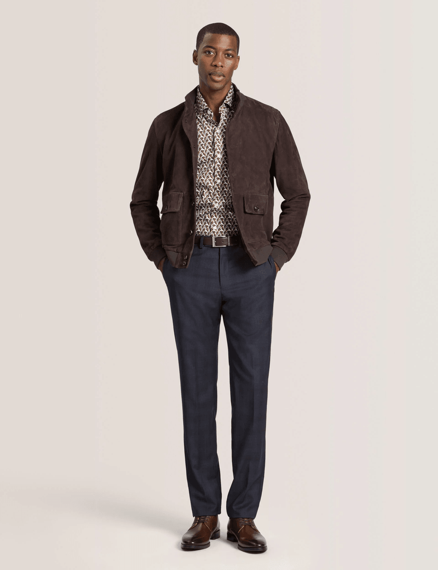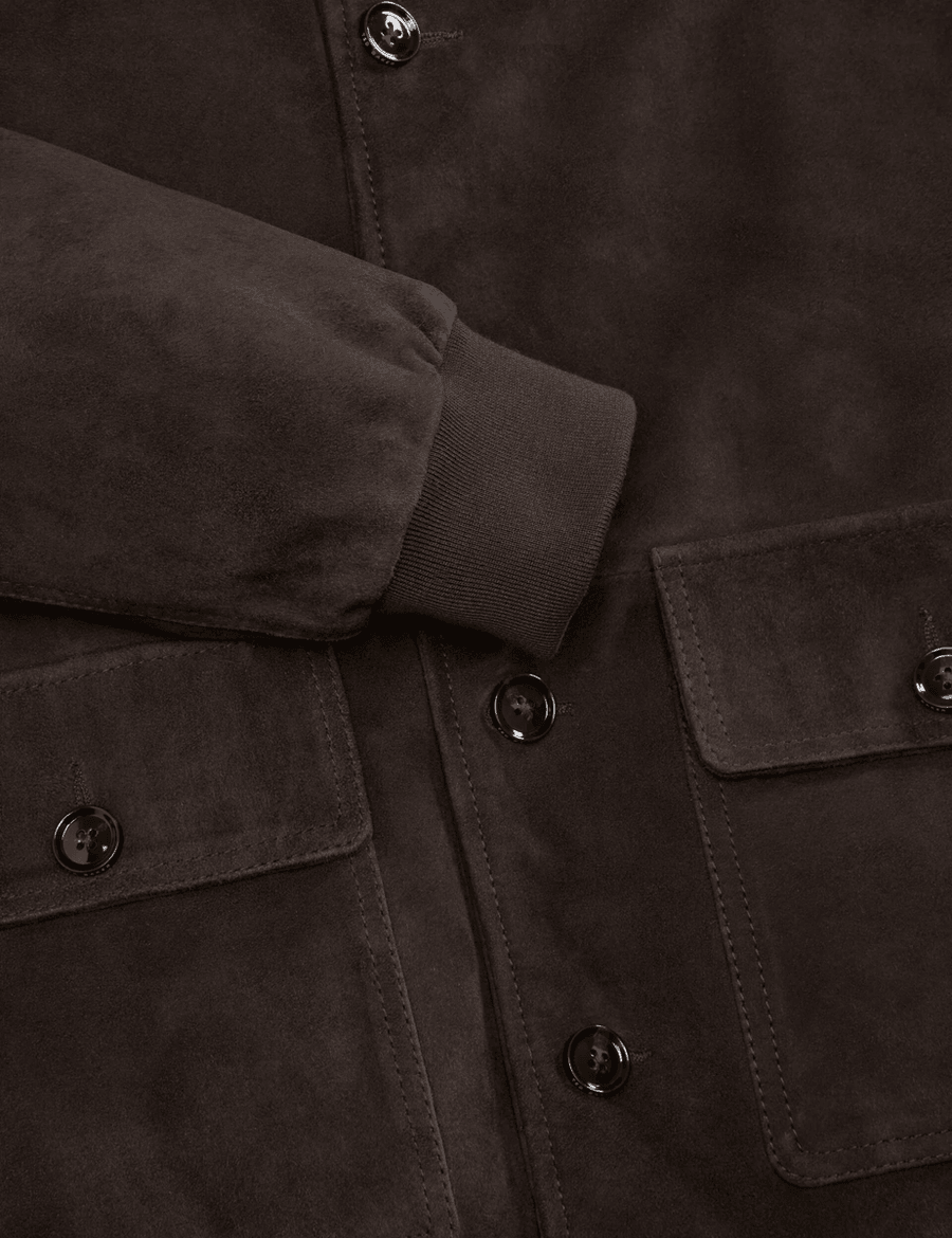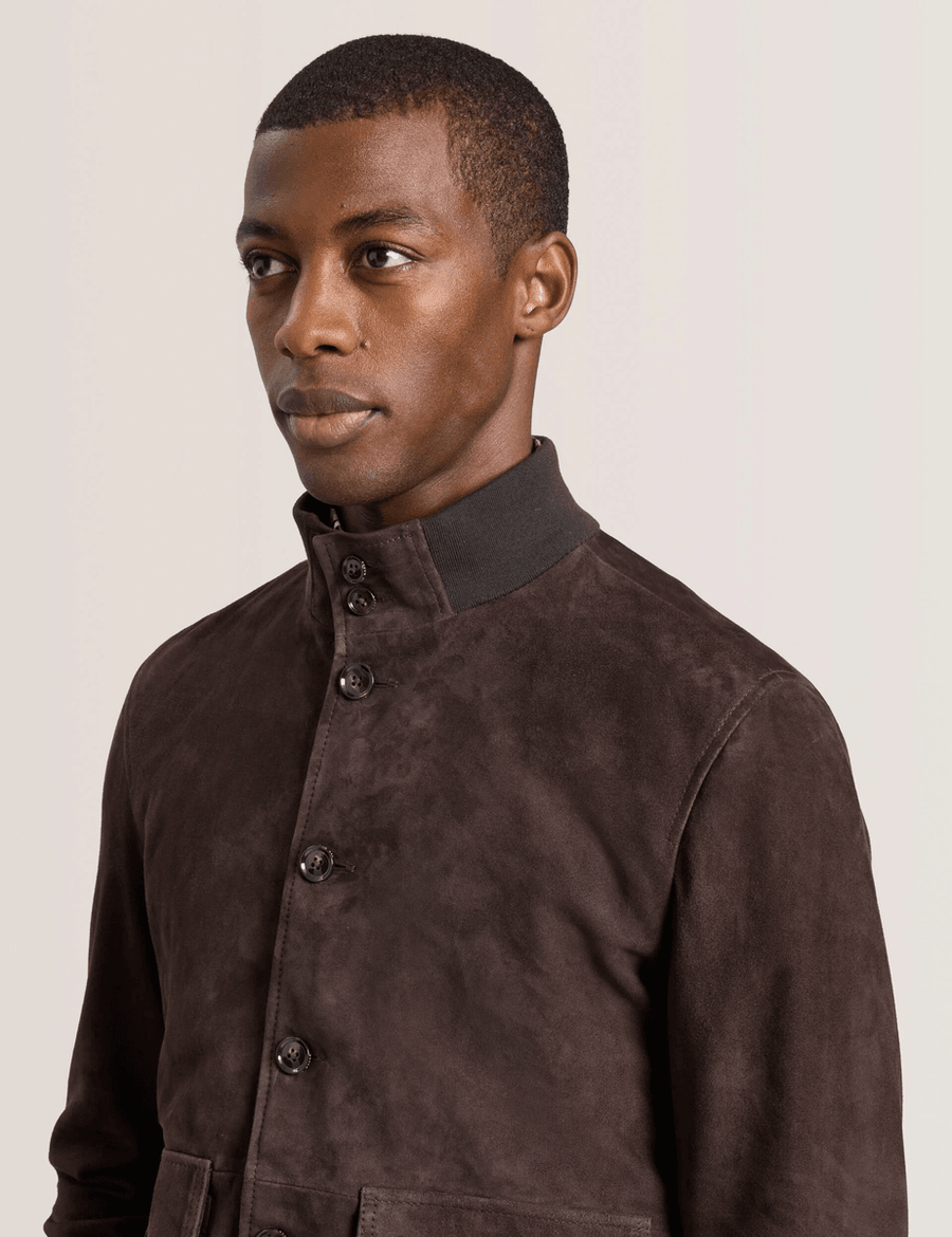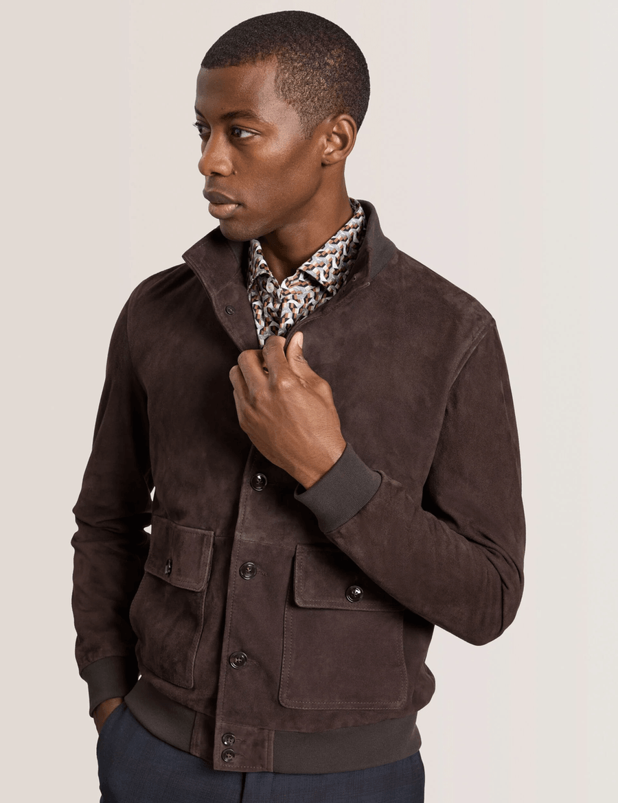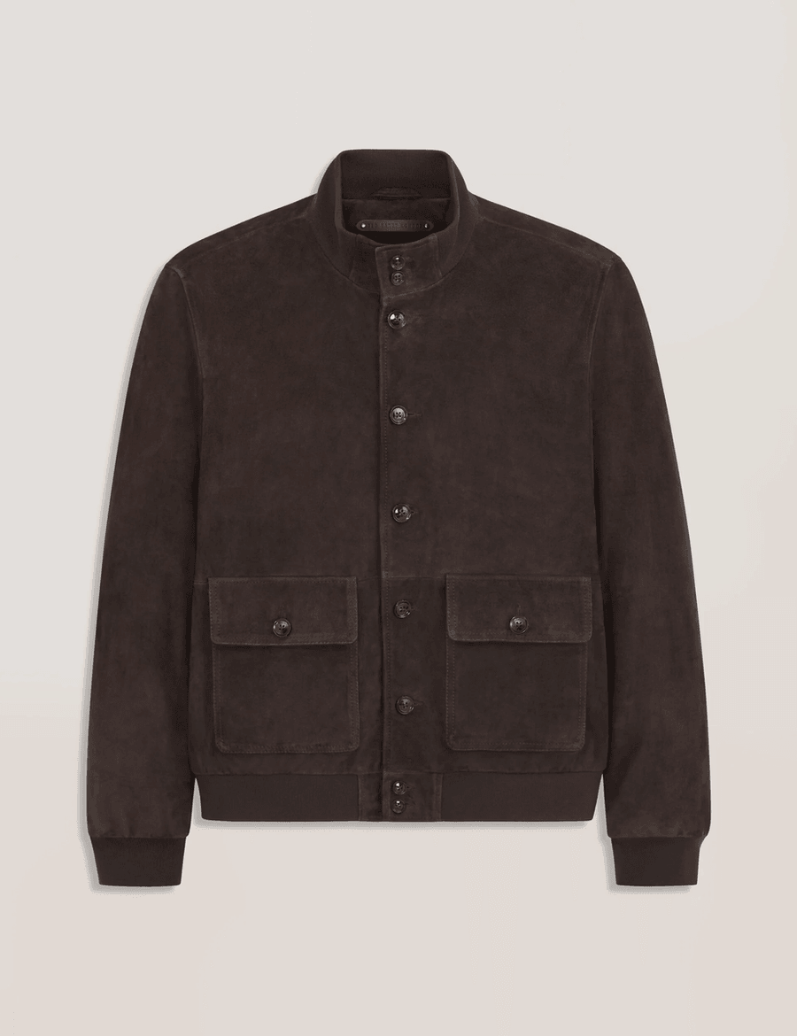 Elevate your style with the Ted Baker WEIR | CHOCOLATE jacket, a perfect blend of casual sophistication and luxurious comfort. Crafted from 100% genuine suede, this jacket offers an incredibly soft touch, making it an essential addition to your wardrobe.