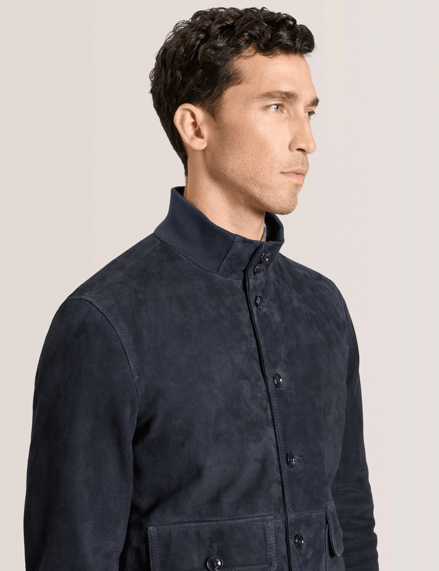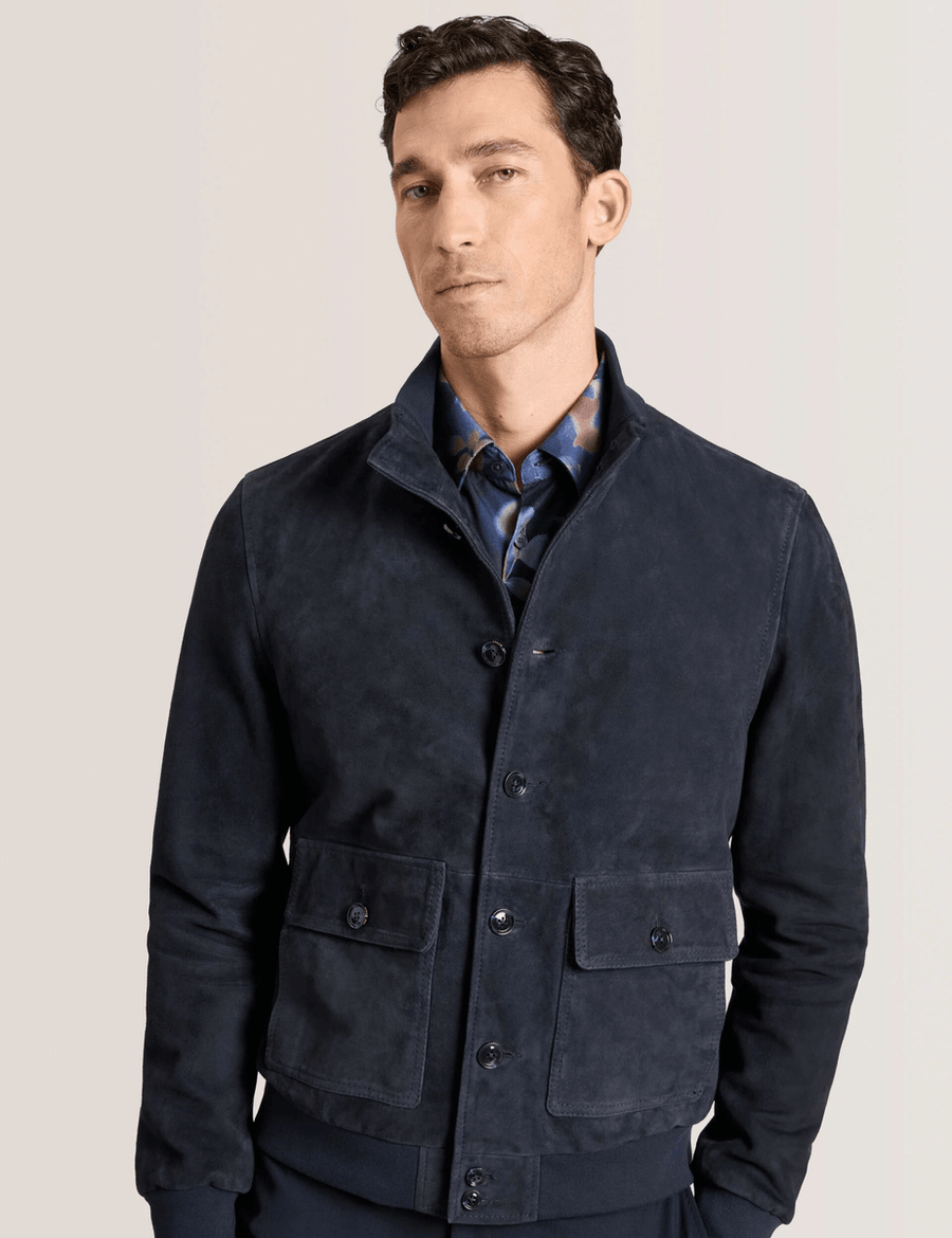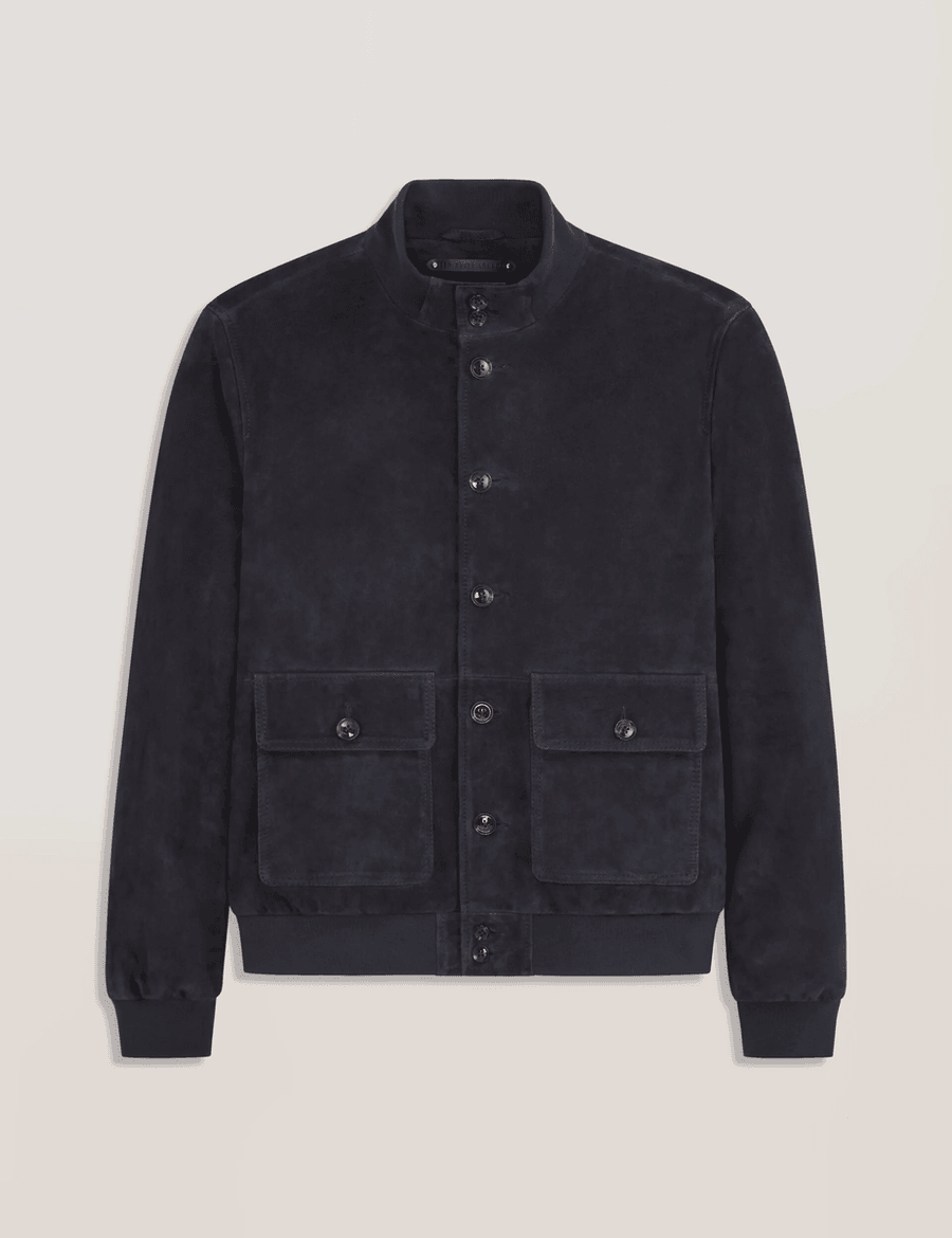Discover the perfect blend of sophistication and comfort with the Ted Baker WEIR | NAVY jacket. This stunning piece is expertly crafted from 100% genuine suede, offering a luxuriously soft feel that enhances your casual wardrobe. Whether you're stepping out for a weekend adventure or enjoying a relaxed stroll through the city, this jacket is your go-to choice.