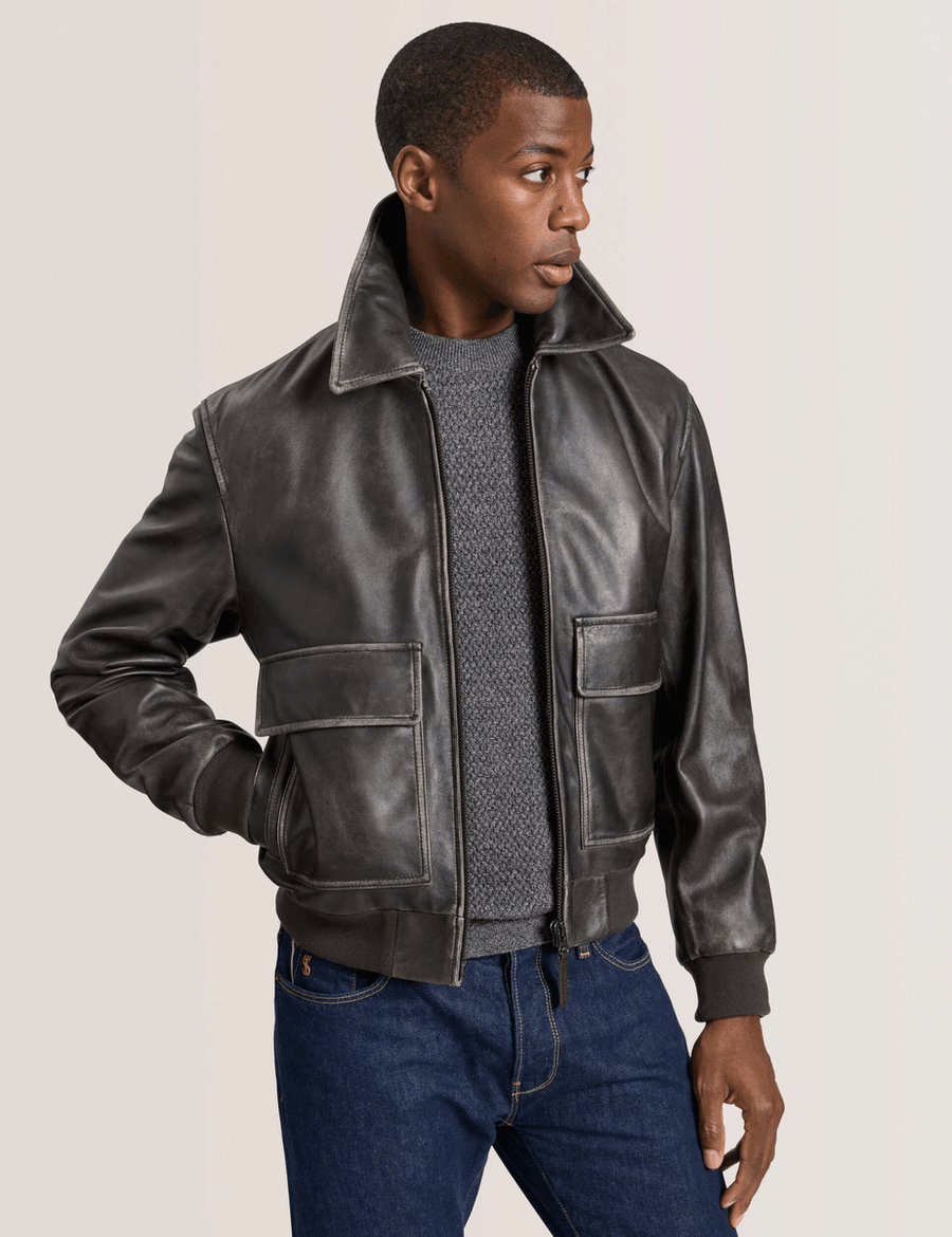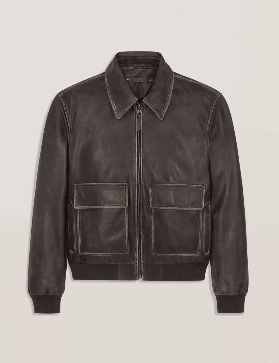 Discover the ultimate in sophistication with the Ted Baker WHISTLER | BROWN jacket. Crafted from supple leather, this jacket is designed to provide a smarter spin on a classic piece, making it an essential addition to your wardrobe.