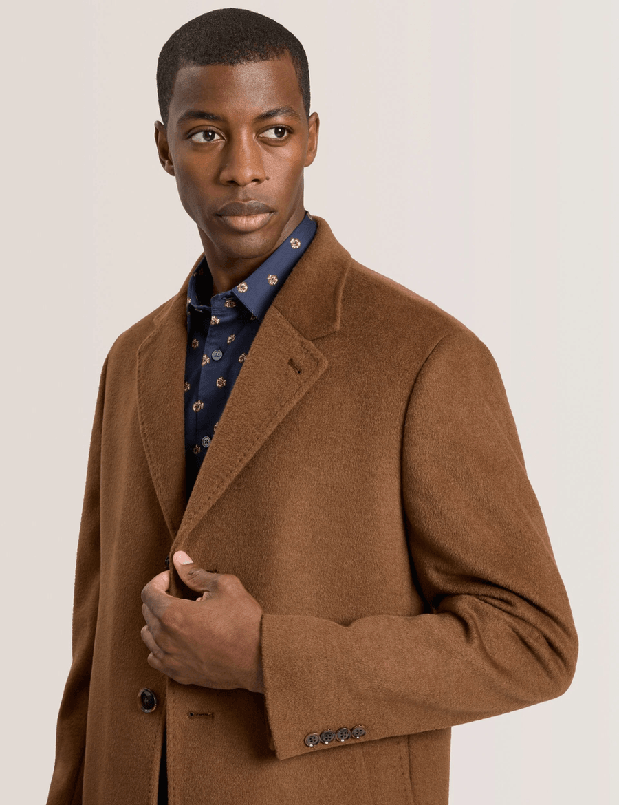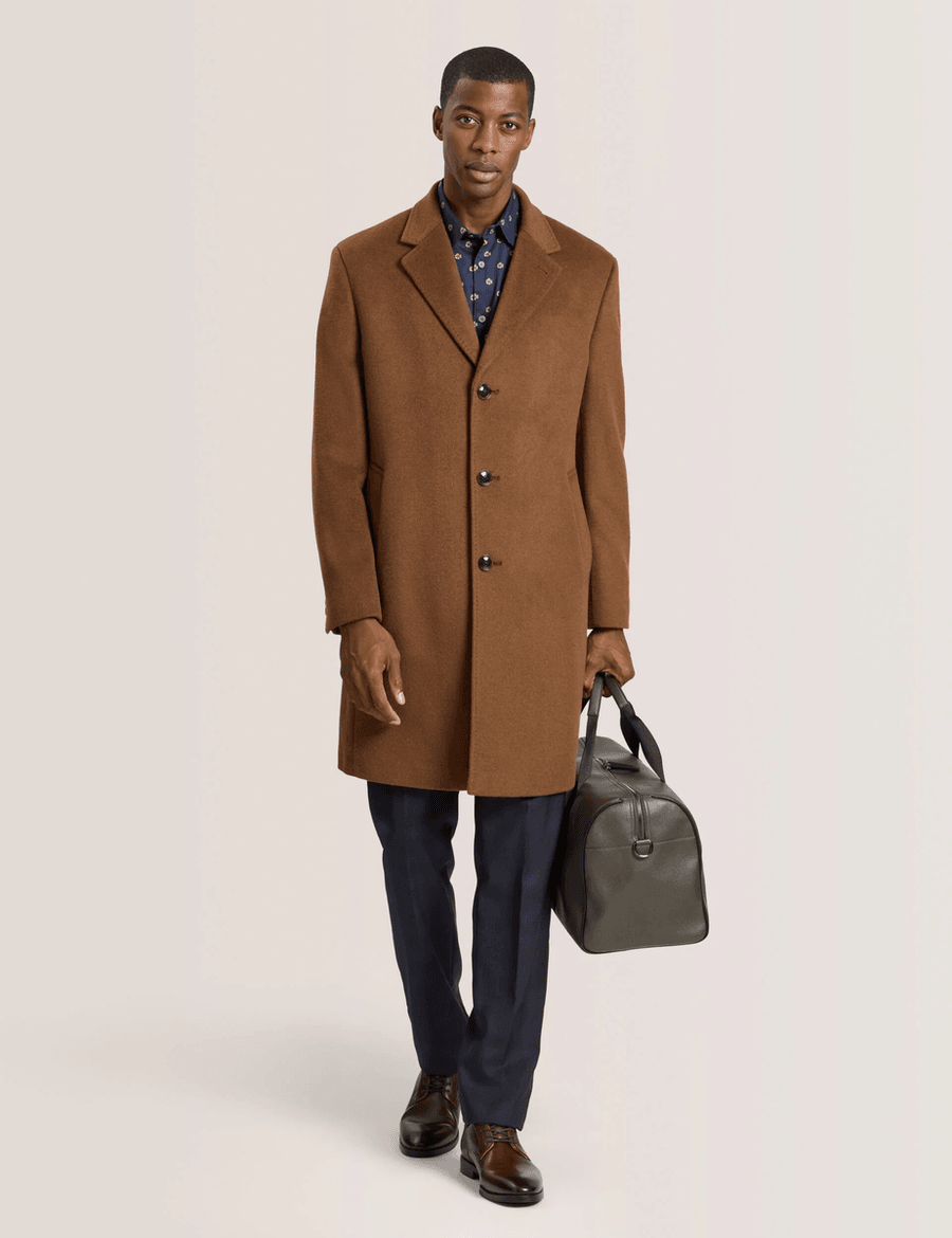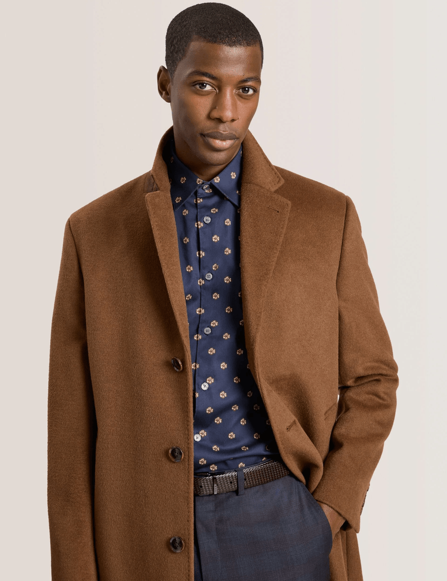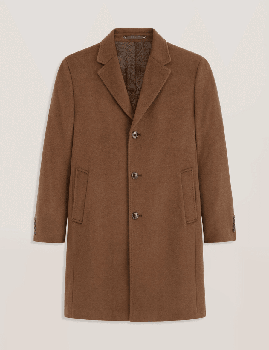 Elevate your wardrobe with the Ted Baker WYSTAN | DK-CAMEL overcoat, a perfect blend of sophistication and comfort. This luxurious overcoat is crafted from a rich wool-cashmere blend, ensuring you stay warm and stylish during the crisp mornings and chilly evenings.