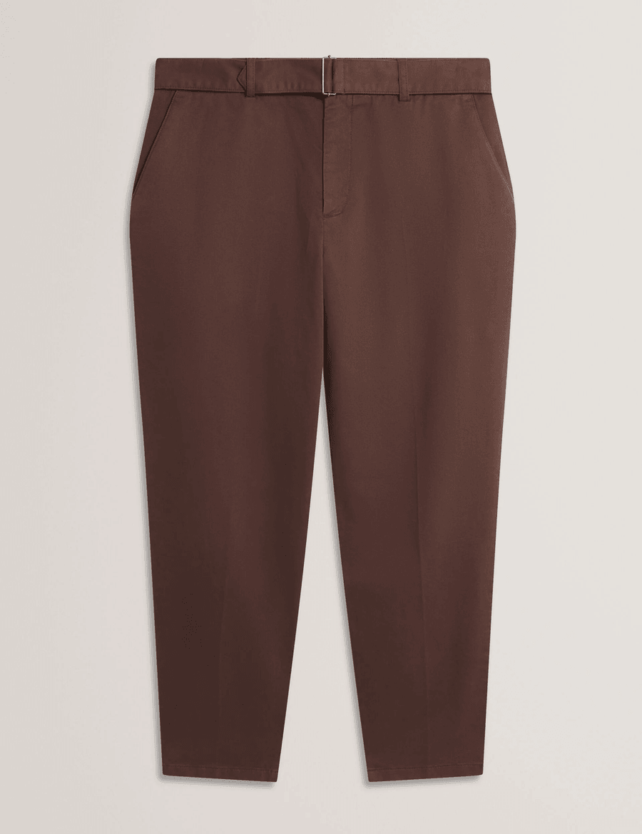 Introducing the Ted Baker ARMODO | DK-BROWN, the perfect blend of style and comfort for the modern man. Crafted from woven cotton fabric with a hint of stretch, these smart casual pants are designed to keep you looking sharp while providing ultimate comfort.