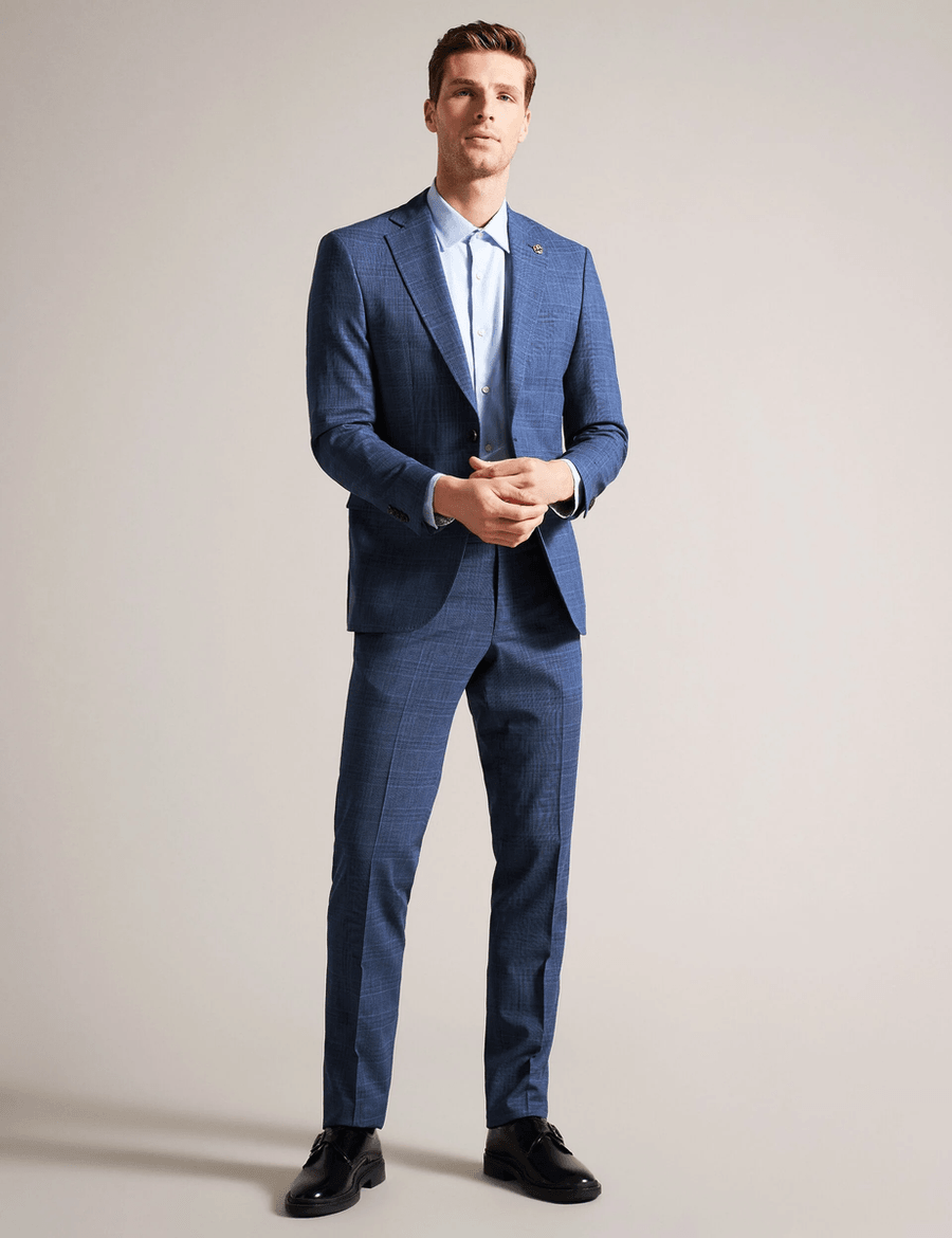 Discover the perfect blend of sophistication and comfort with the Ted Baker DRYDENT | NAVY suit trousers. Crafted with a premium wool blend and featuring a stylish check pattern, these trousers are designed for the modern gentleman who values both style and functionality.