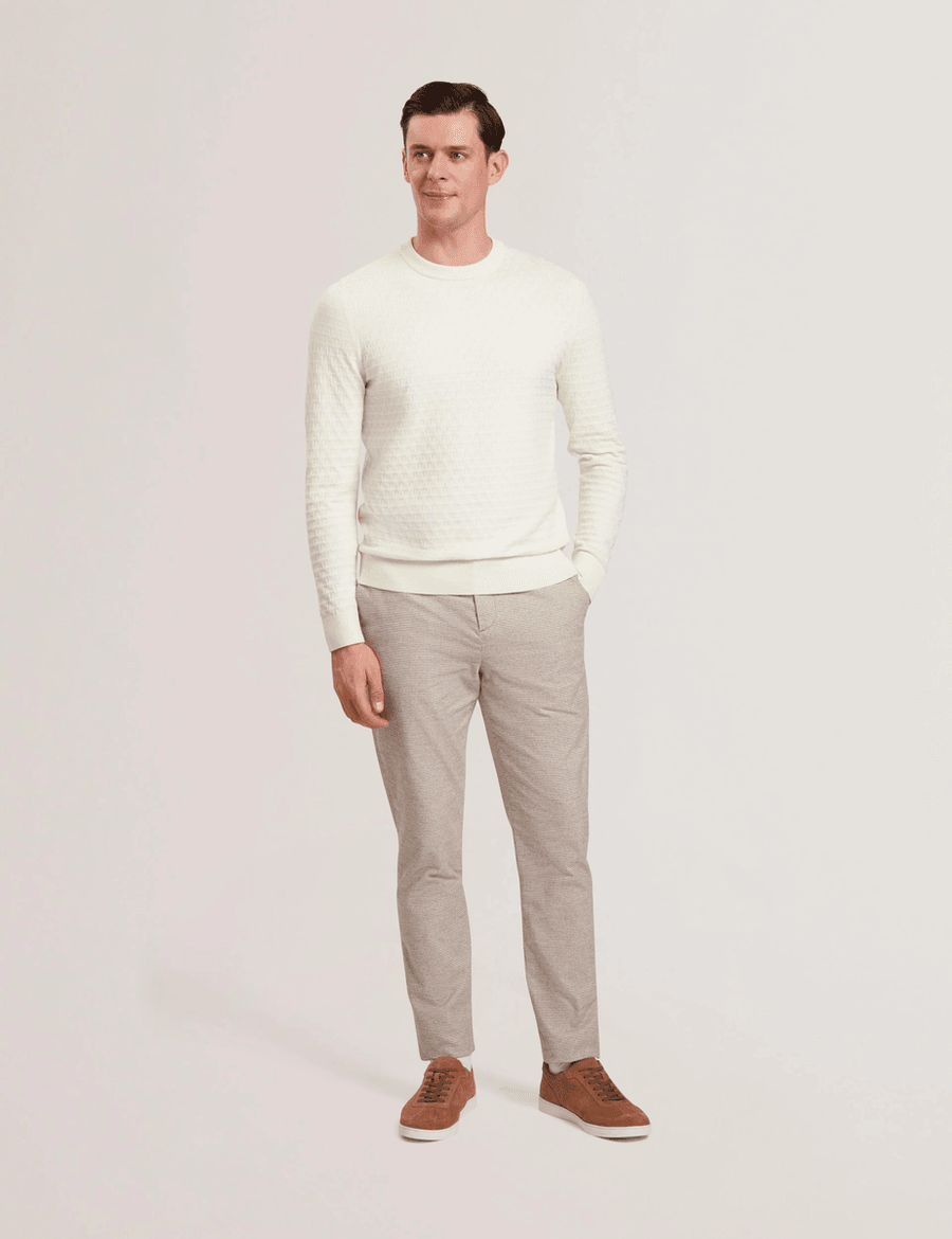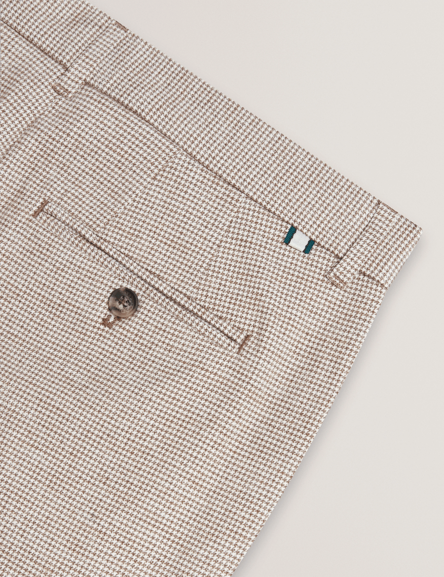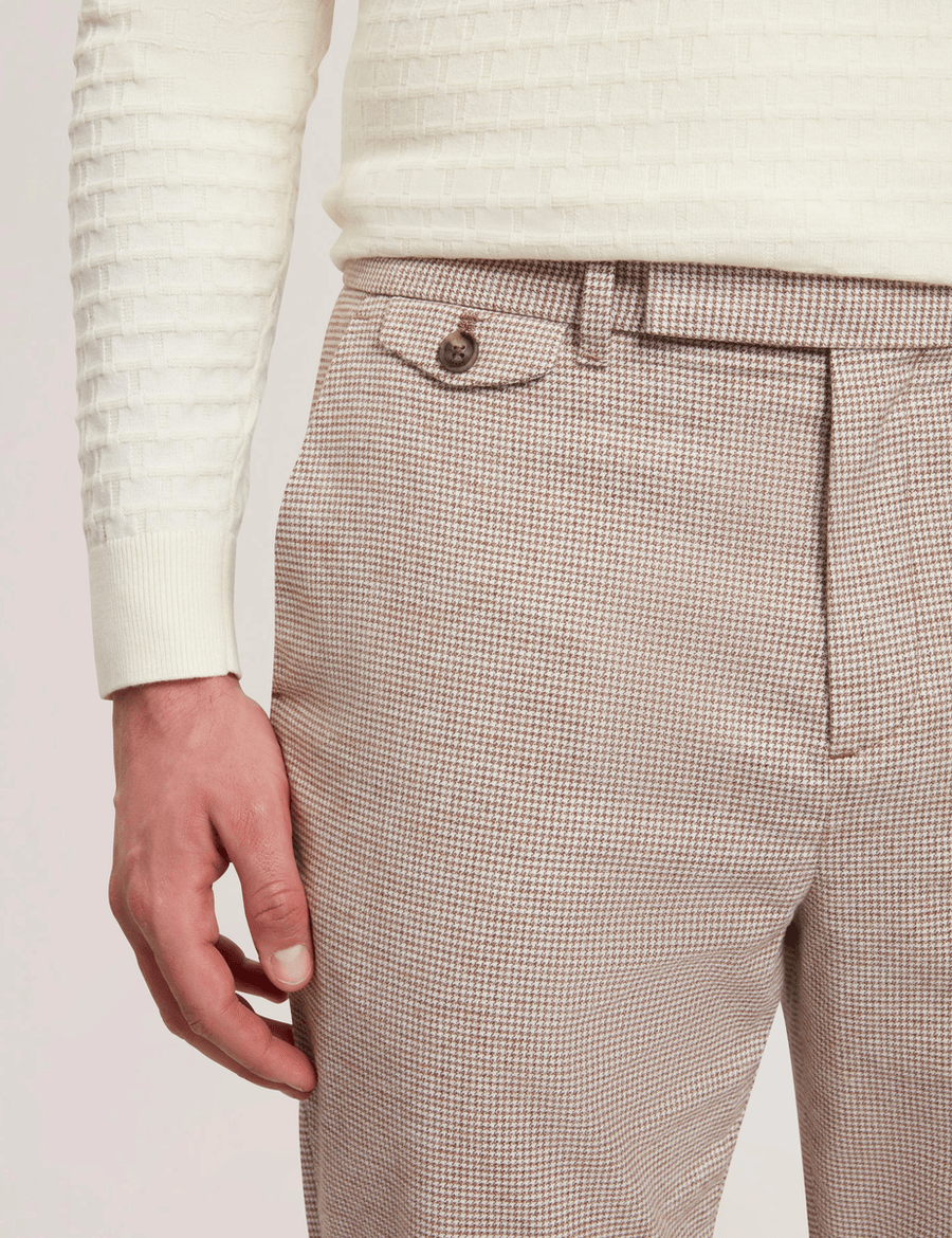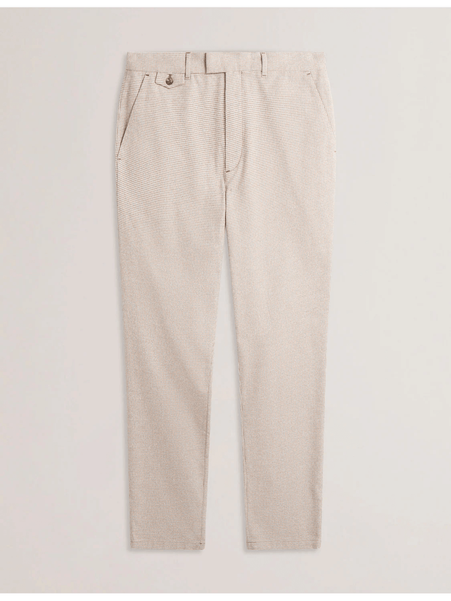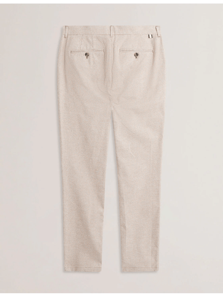 Introducing the Ted Baker HANDLY | TAUPE, the perfect blend of sophistication and modern flair. Designed with a striking micro houndstooth check pattern, these slim-fit pants will instantly upgrade your wardrobe. Whether you’re dressing up for a formal occasion or keeping it casual, the HANDLY pants are your go-to choice for versatility.