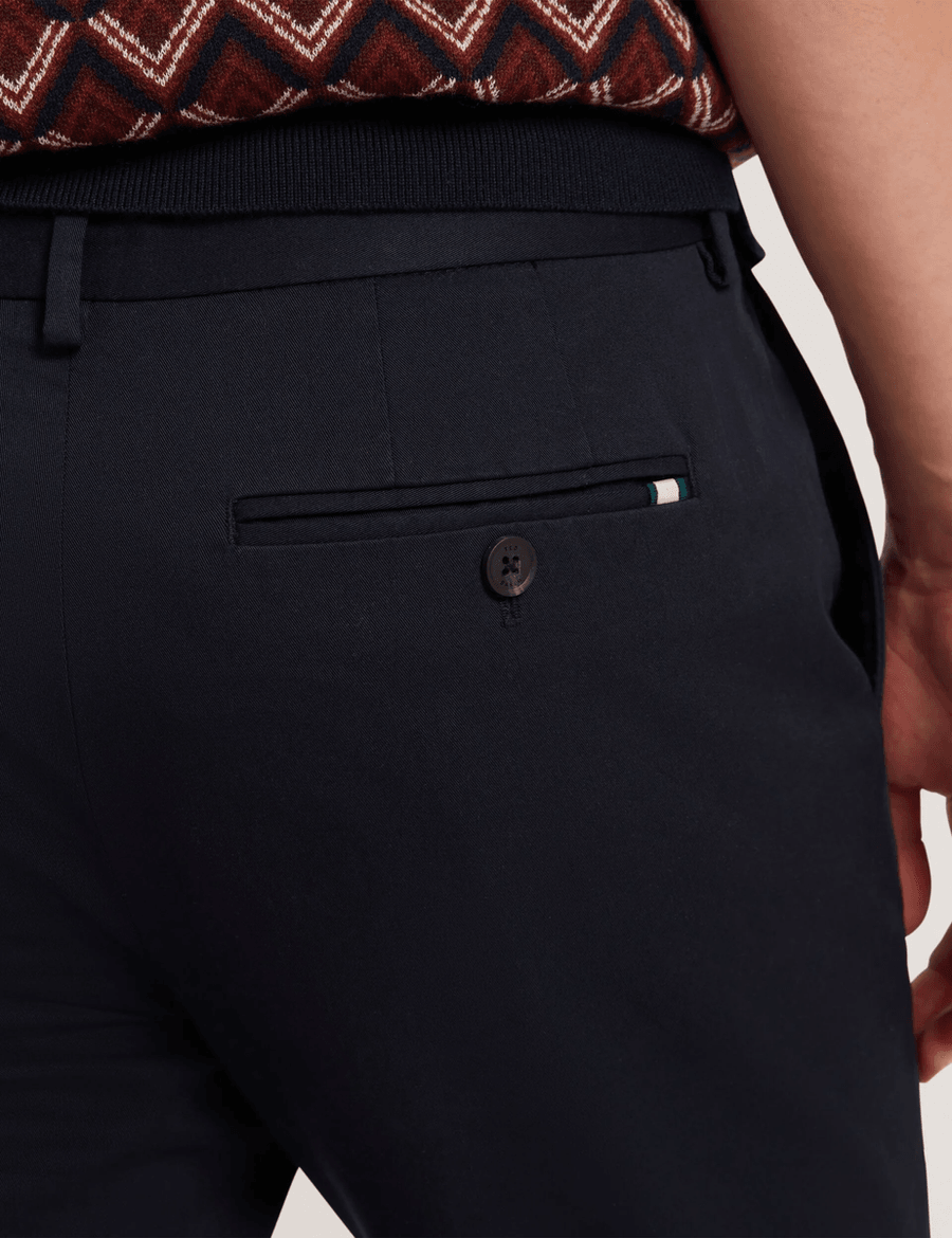 Elevate your wardrobe with the Ted Baker HOWETON | NAVY slim fit chinos. Crafted from premium stretch cotton fabric, these chinos provide both comfort and style, making them a must-have for any modern man.