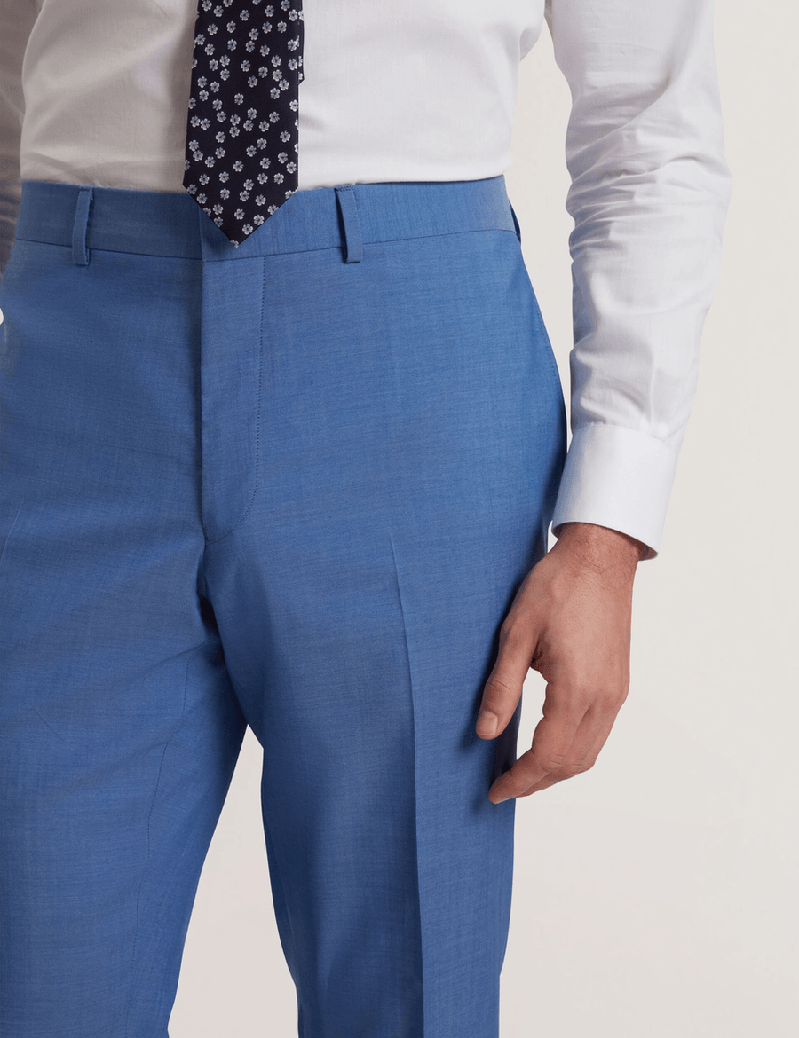 Elevate your formal wardrobe with the Ted Baker JAYINGS | BLUE suit pants. Crafted in a refreshing lighter blue hue, these pants feature a sophisticated woven texture that adds a touch of elegance to any ensemble. Ideal for both professional settings and social occasions, the slim fit design makes them versatile for dressing up or down.