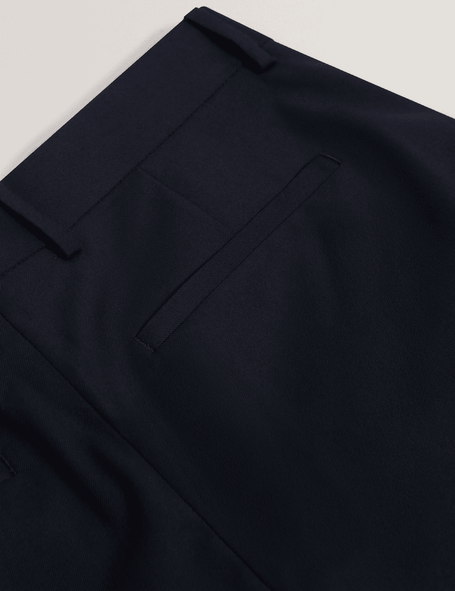 - Welt Back Pockets: Keep your look polished with the refined welt back pockets.