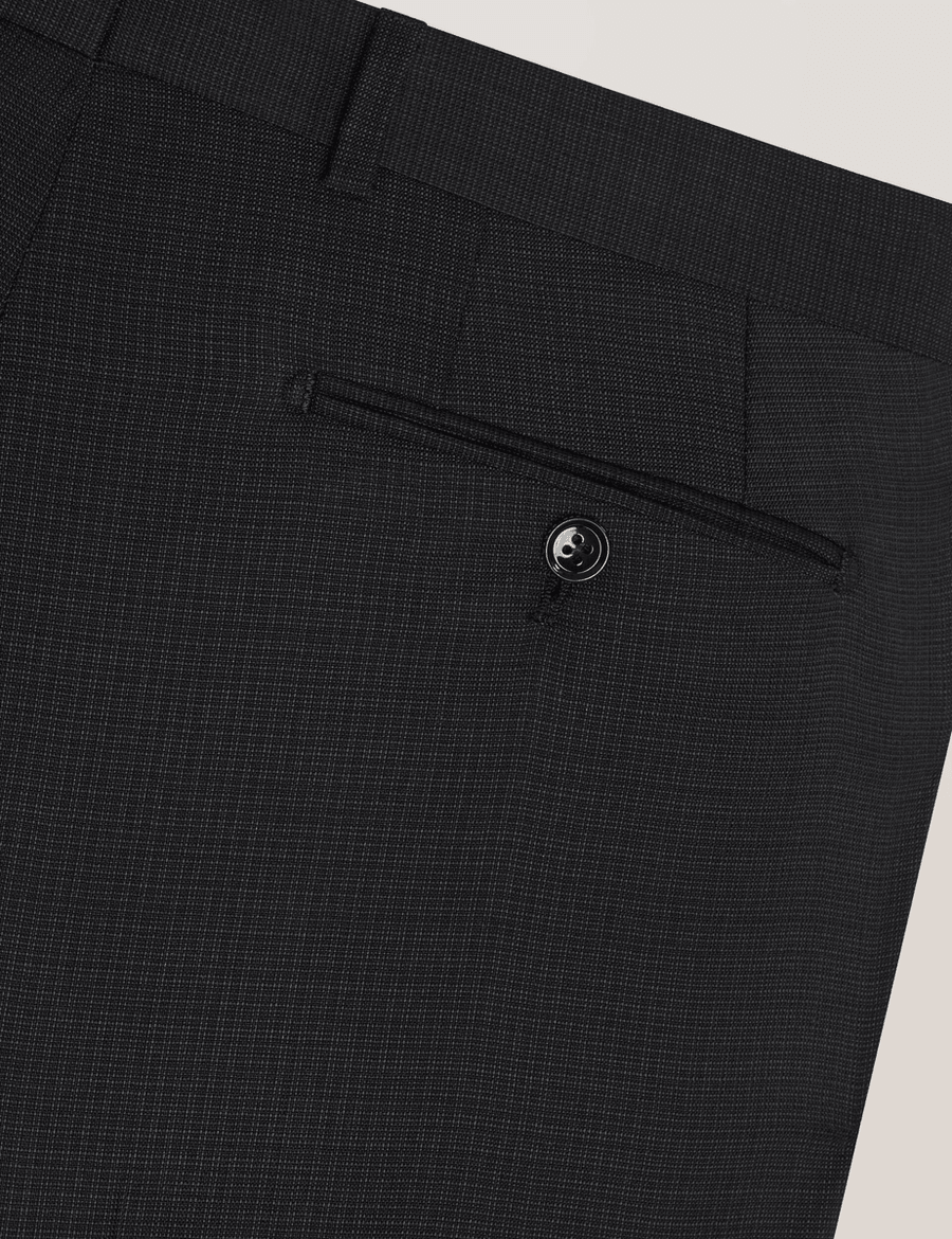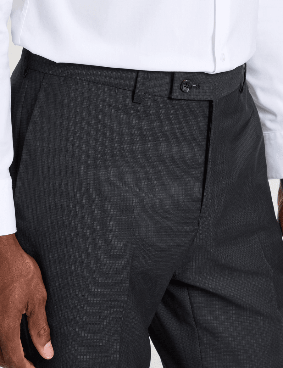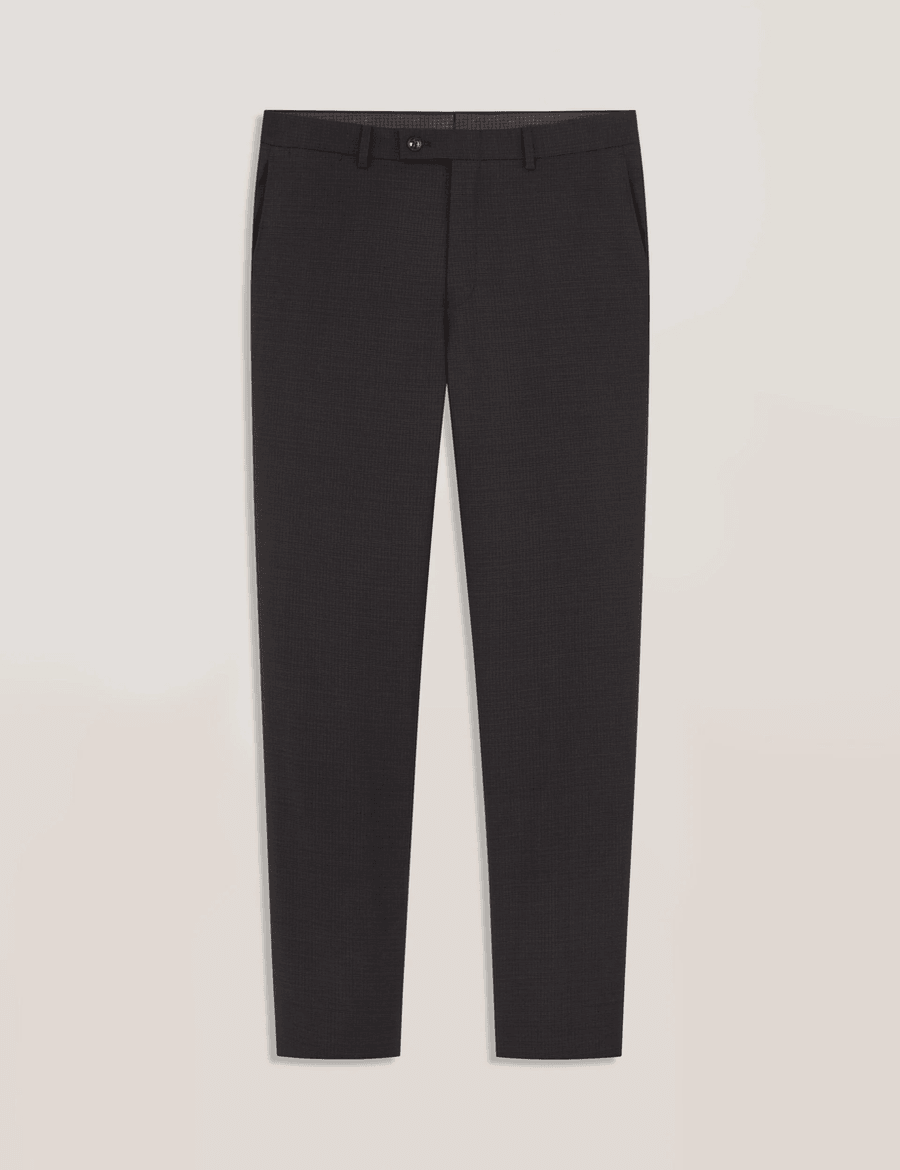Introducing the Ted Baker WINTER-GRID | BLACK, the quintessential suit pant that combines timeless elegance with modern comfort. Crafted from a premium woven wool-blend fabric, these trousers feature a subtle tonal grid that adds a touch of sophistication to any tailored wardrobe.