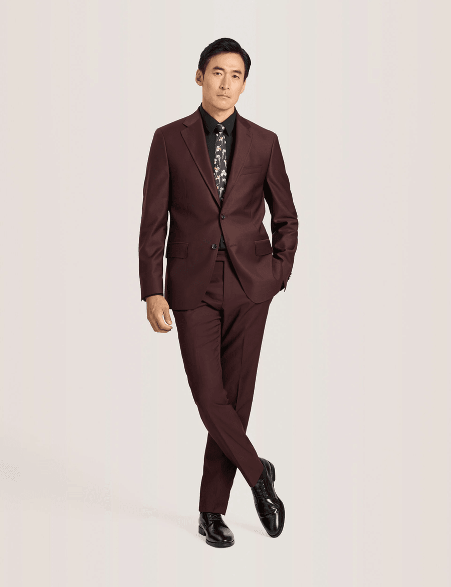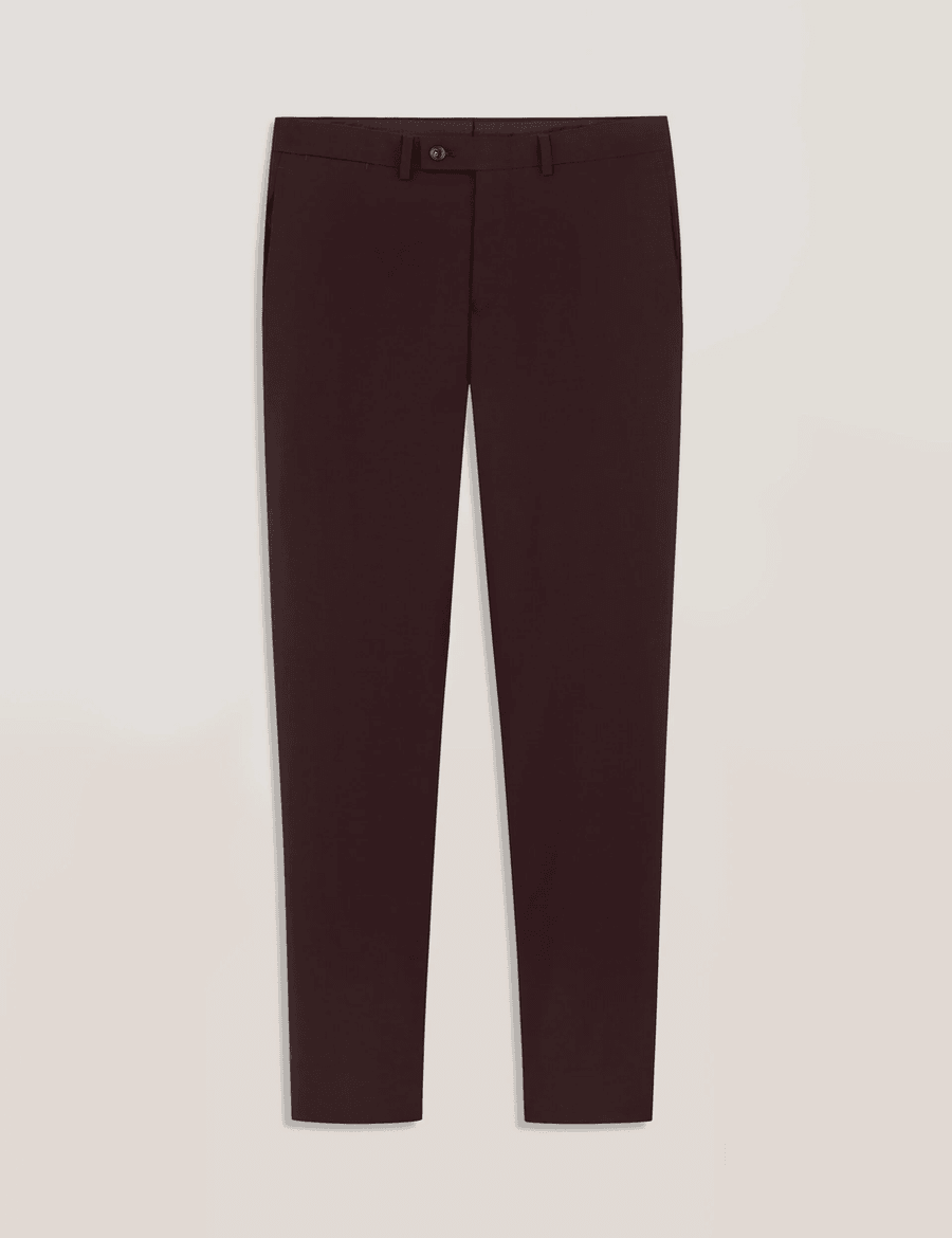 Discover the ultimate blend of style and comfort with the Ted Baker WINTER-TWILL | BURGUNDY suit pant. Crafted from a luxurious soft wool-blend fabric, these trousers offer a smooth twill texture that feels as good as it looks. Perfect for both professional and social settings, this modern wardrobe essential is designed to enhance your silhouette.