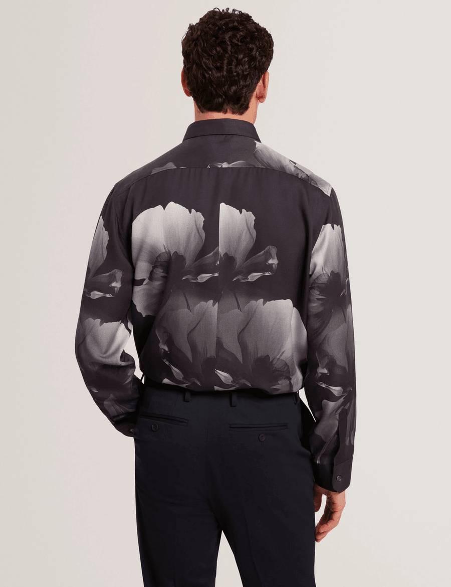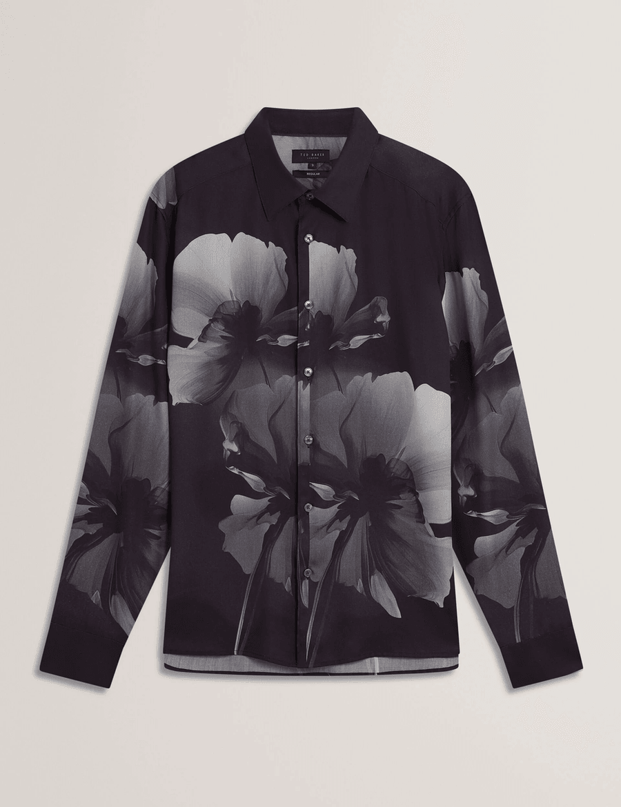 Discover the perfect blend of style and comfort with the Ted Baker AMUND | BLACK long sleeve shirt. This stunning shirt features a monochrome photographic floral print that adds a touch of sophistication to any outfit. Crafted from comfortable woven fabric, it’s designed for both casual and formal occasions.