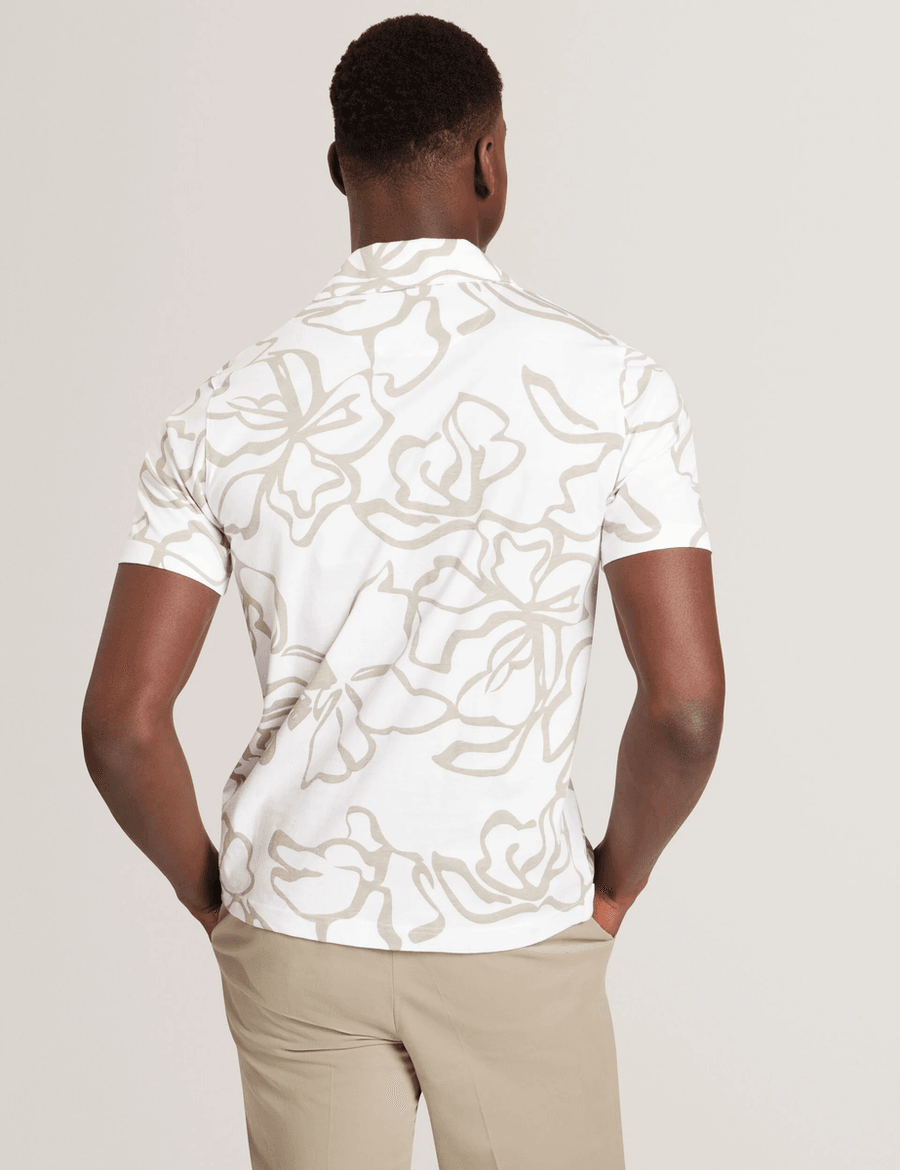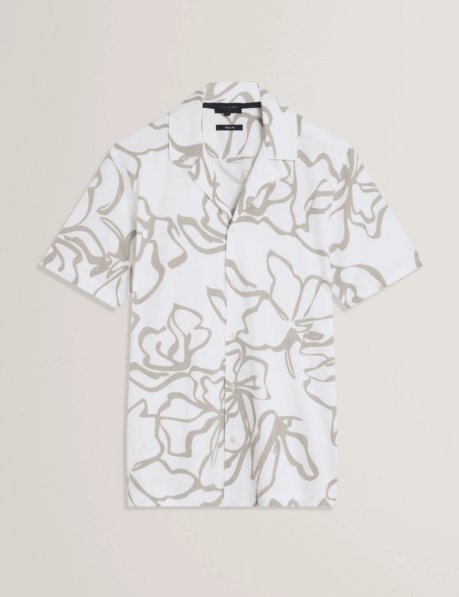 Discover the perfect blend of style and comfort with the Ted Baker CLAUB | WHITE short sleeve shirt. Crafted from premium cotton jersey fabric, this shirt features a large abstract floral print that adds a touch of sophistication to any outfit.