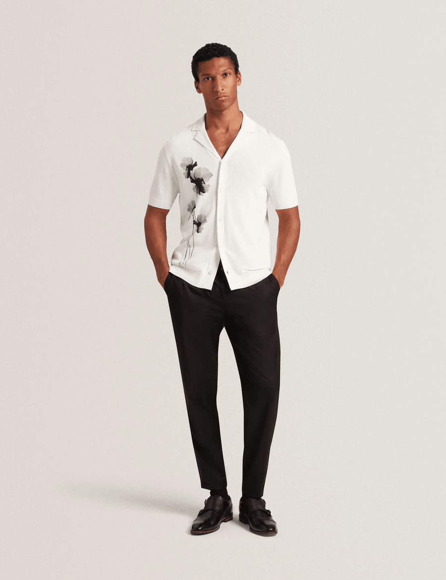 Discover the perfect blend of sophistication and comfort with the Ted Baker DAFFID | WHITE short sleeve shirt. Designed for the modern man, this stylish piece features a striking monochrome floral graphic that adds a touch of elegance to any outfit.