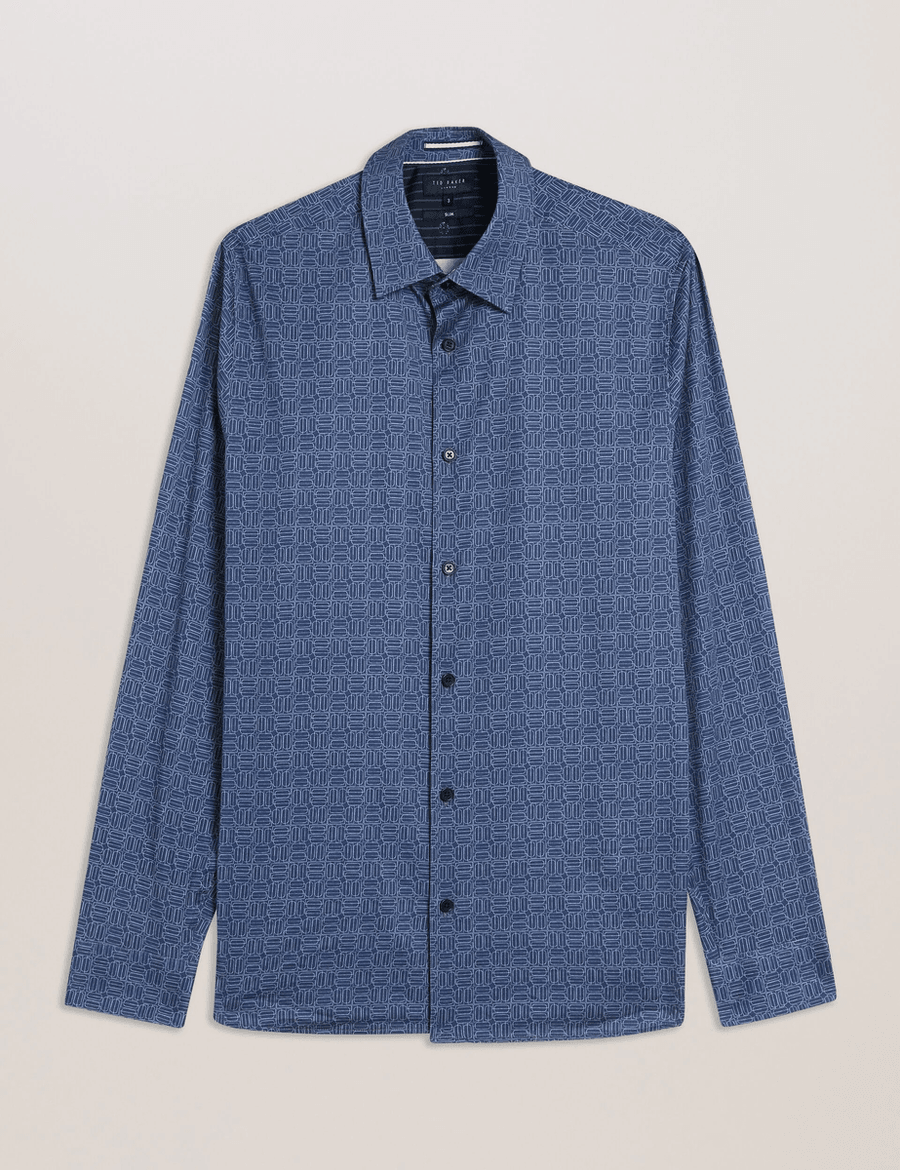 Introducing the Ted Baker ENDOVER | NAVY, a striking long-sleeve shirt that perfectly blends retro geometric design with timeless tailoring. This shirt not only adds flair to your outfit but also ensures you look sharp and feel comfortable all day long.
