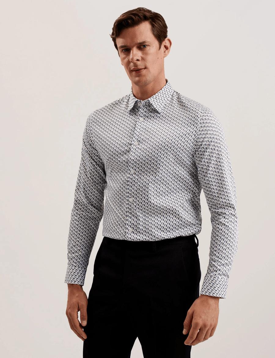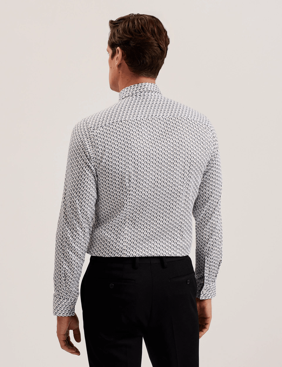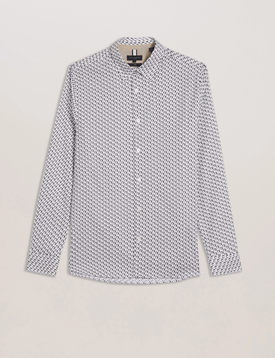 Discover the perfect blend of comfort and sophistication with the Ted Baker JOSHHY | TAUPE. This long sleeve shirt is designed for the modern man who values both style and ease of wear. Featuring a unique hexagonal geometric pattern, this slim fit shirt is a statement piece for any occasion.