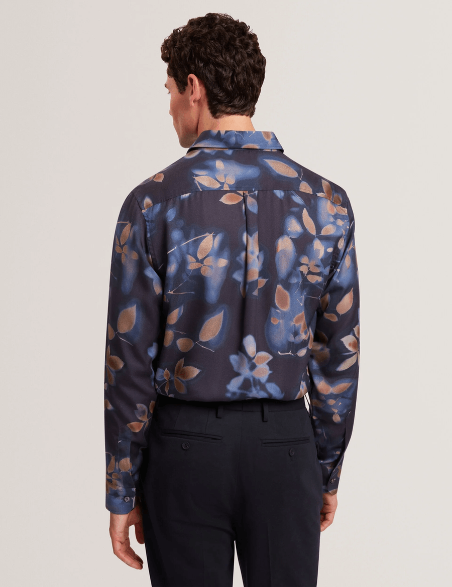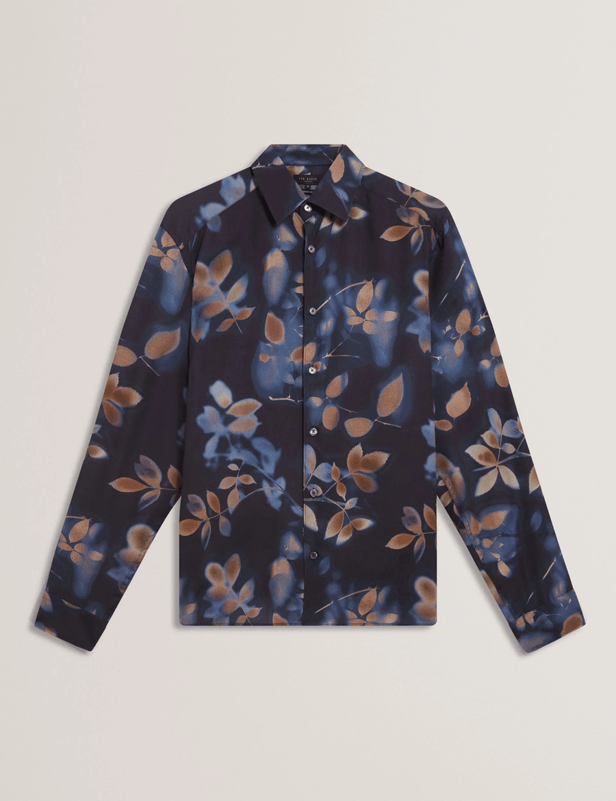 Discover the perfect blend of comfort and sophistication with the Ted Baker KALMILL | NAVY. This long sleeve shirt features a stunning photographic blurred leaf print that adds a unique touch to your wardrobe. Crafted from breathable woven fabric, this shirt is designed for both style and functionality.