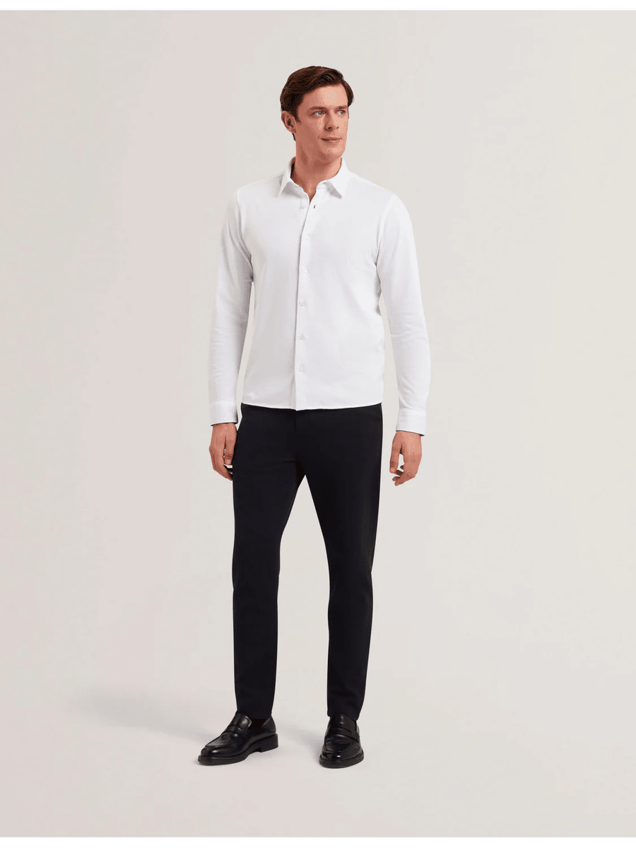 Elevate your style with the Ted Baker LUCKEY | WHITE long sleeve shirt, crafted from premium pique jersey fabric. This shirt combines comfort and sophistication, making it a must-have for your wardrobe.