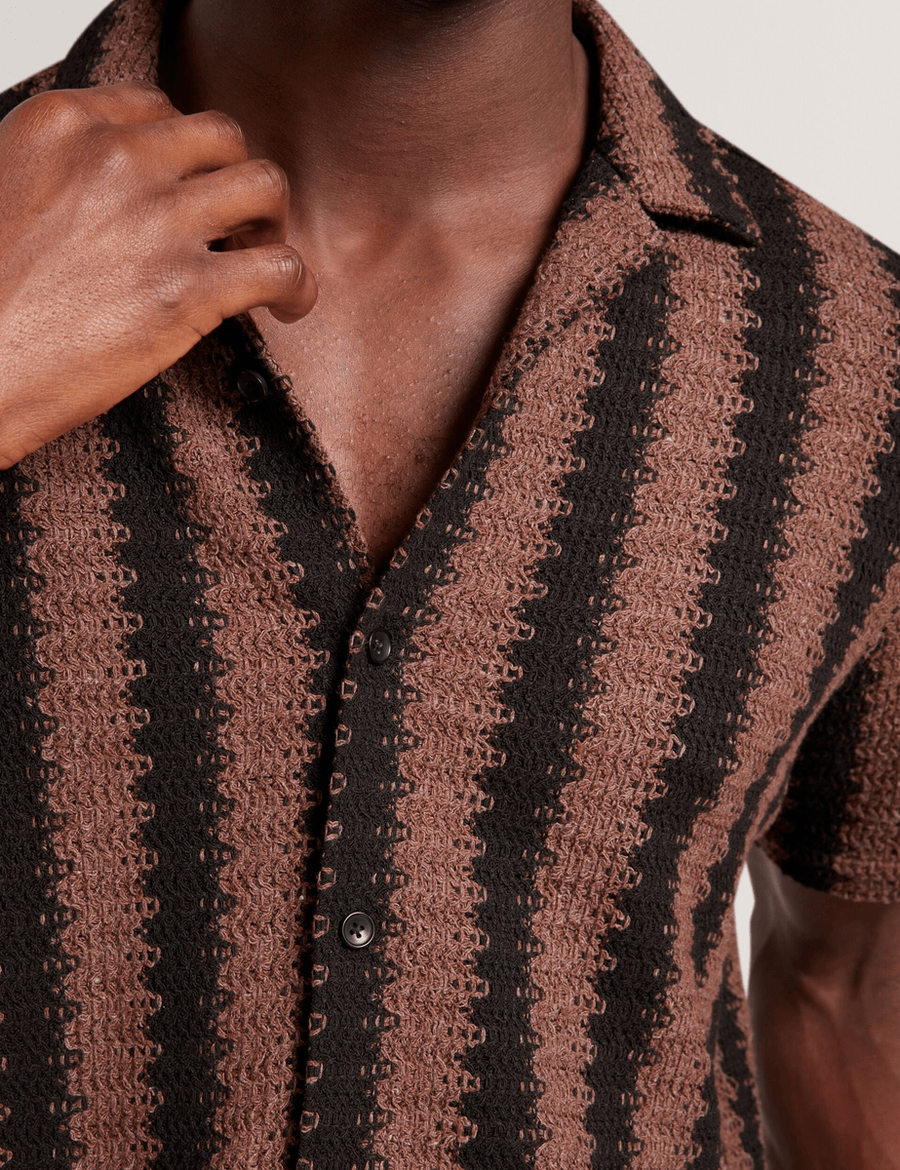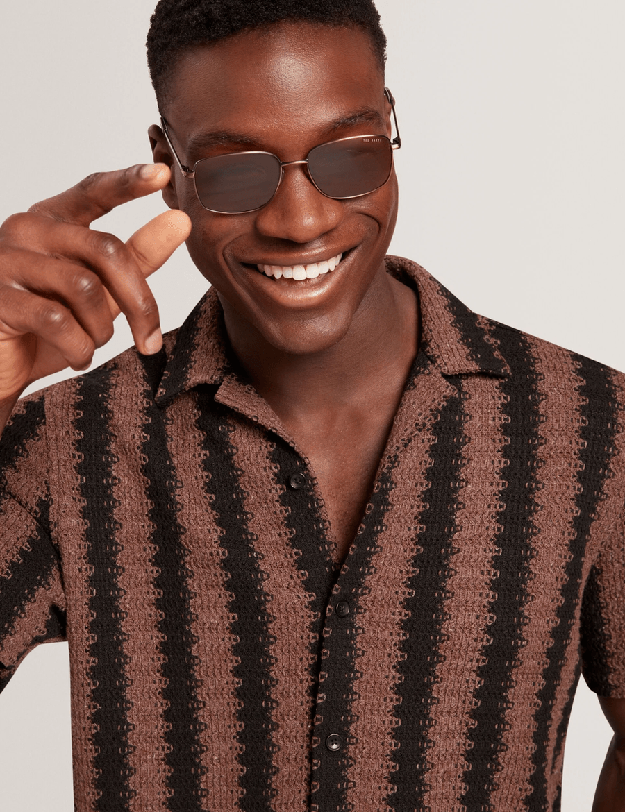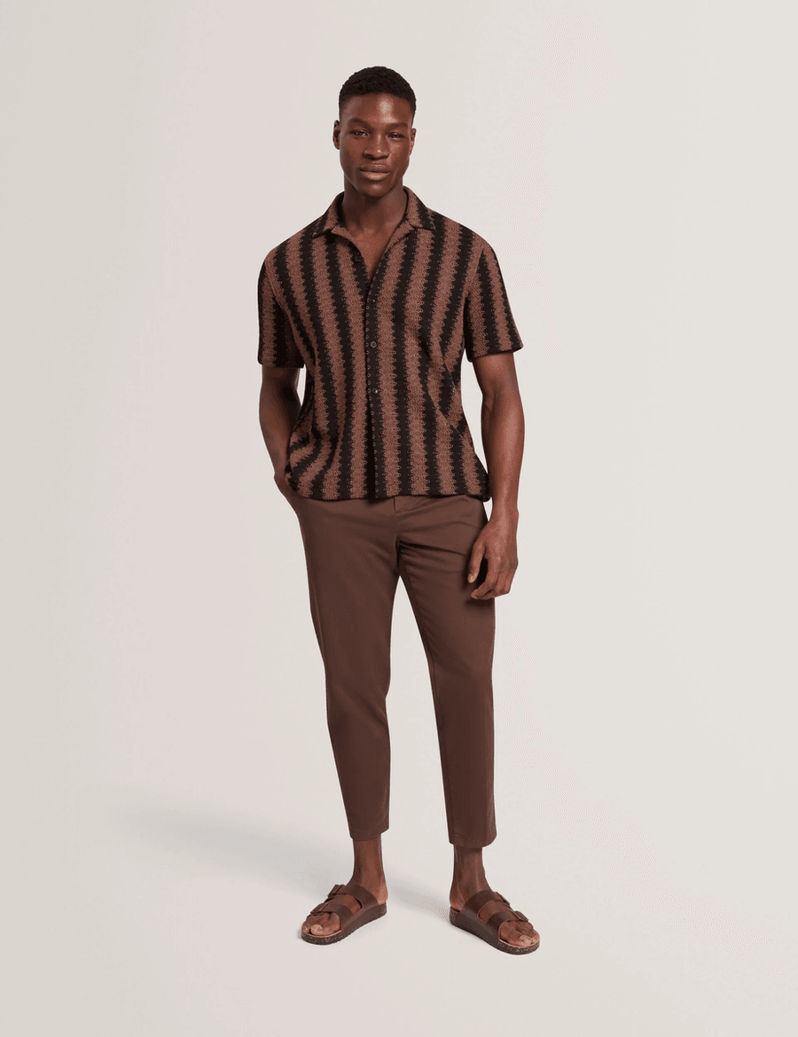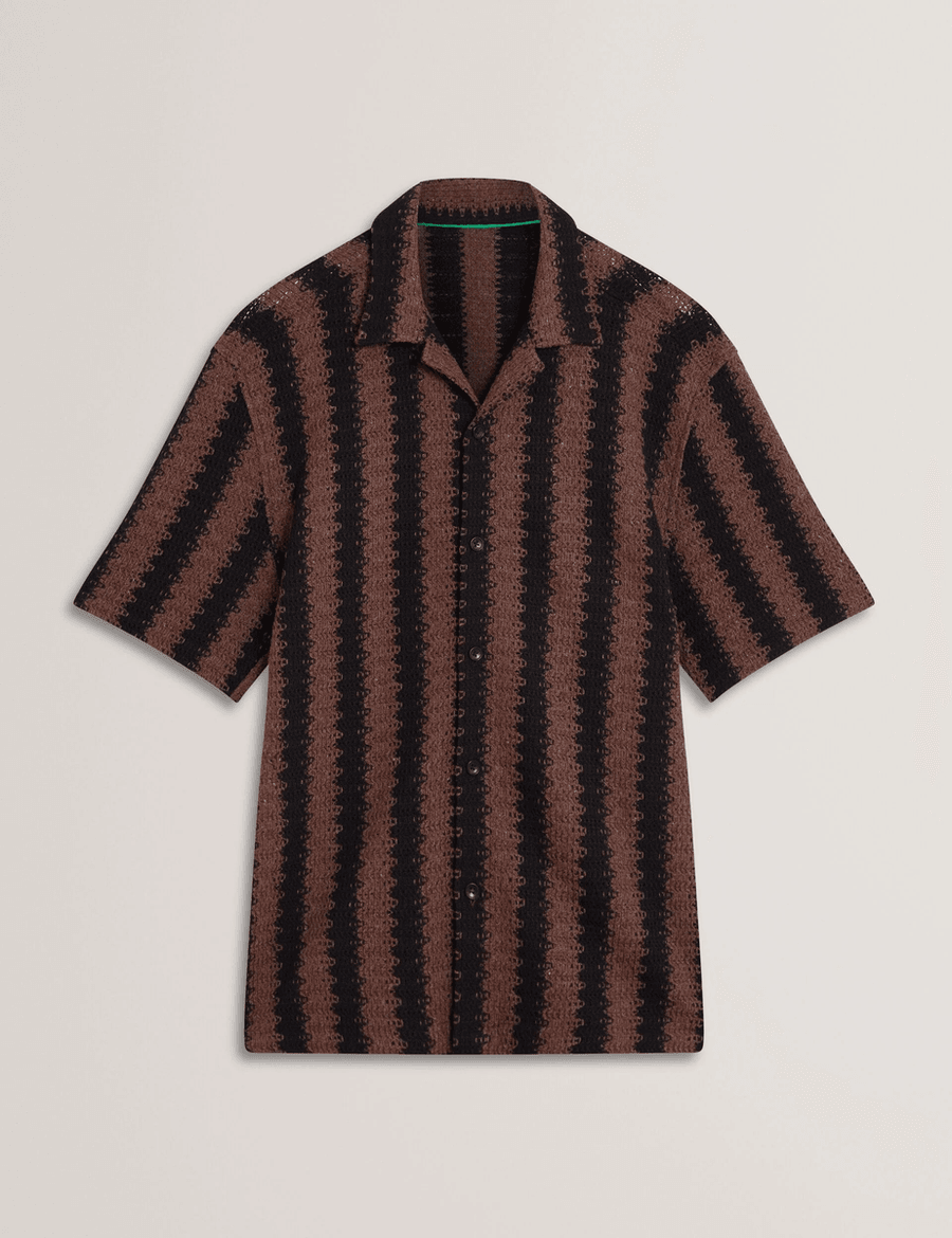 Elevate your casual wardrobe with the Ted Baker MONIER | BLACK. This relaxed short sleeve shirt combines comfort and style, featuring a unique crochet knit fabric that ensures you stand out from the crowd.