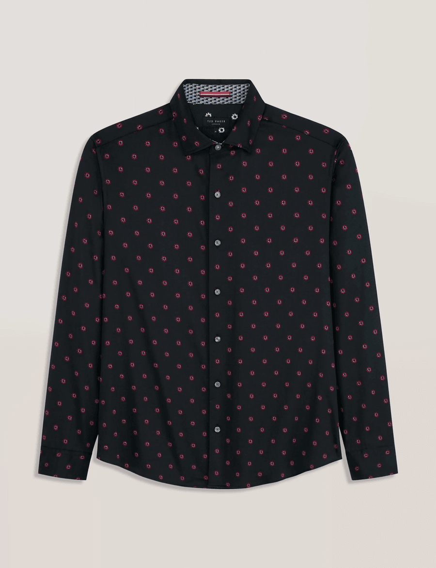 Elevate your wardrobe with the Ted Baker SOREN LONG SLEEVE DAISY PRINT SHIRT in Black Beauty. This stylish shirt combines a modern aesthetic with ultimate comfort, making it a must-have for any fashion-forward individual.