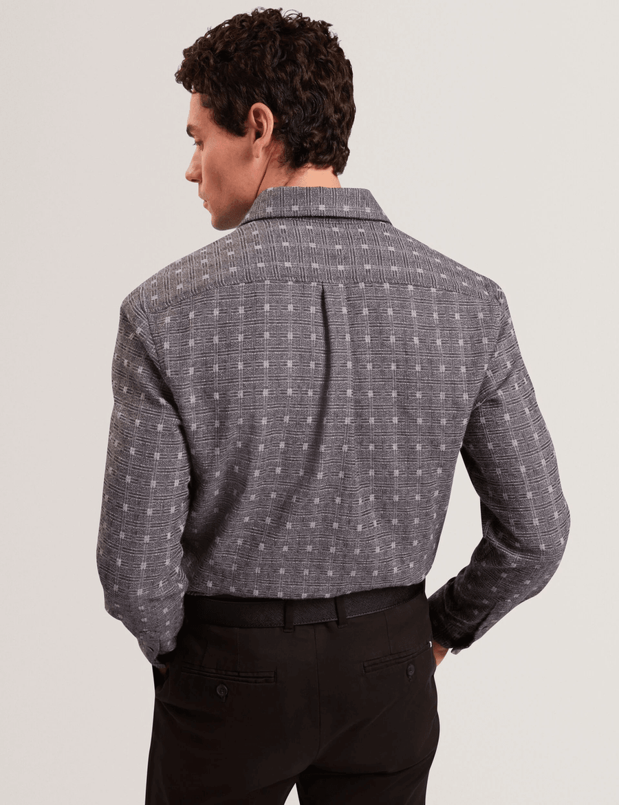 The Ted Baker VYSER | GREY features a unique jacquard tonal check that is both stylish and eye-catching. Crafted from a high-quality cotton-rich woven fabric, this long sleeve shirt ensures all-day comfort without compromising on style. Whether you're heading to the office or out for a casual weekend, this shirt provides the versatility you need.
