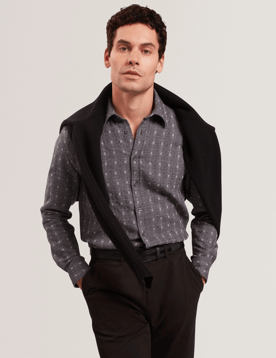 - Jacquard tonal check design: Elevate your style with a sophisticated, buttoned-up look.