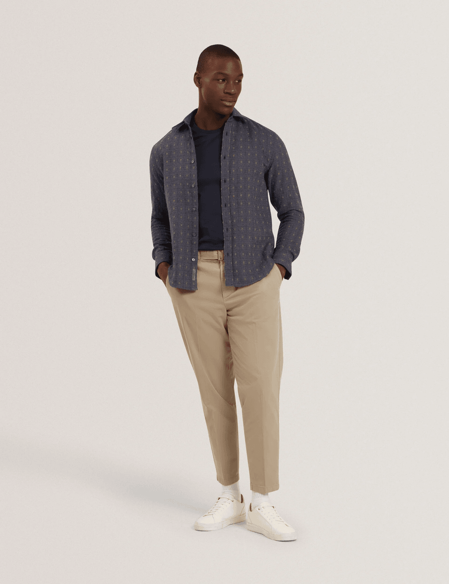 The Ted Baker VYSER | TEAL-BLUE features a striking jacquard check design that sets you apart in all the right ways. Its long sleeves provide warmth and style, while the tonal button fastenings add a touch of elegance. Whether you’re dressing up for a business meeting or down for a casual outing, this shirt is your go-to choice.