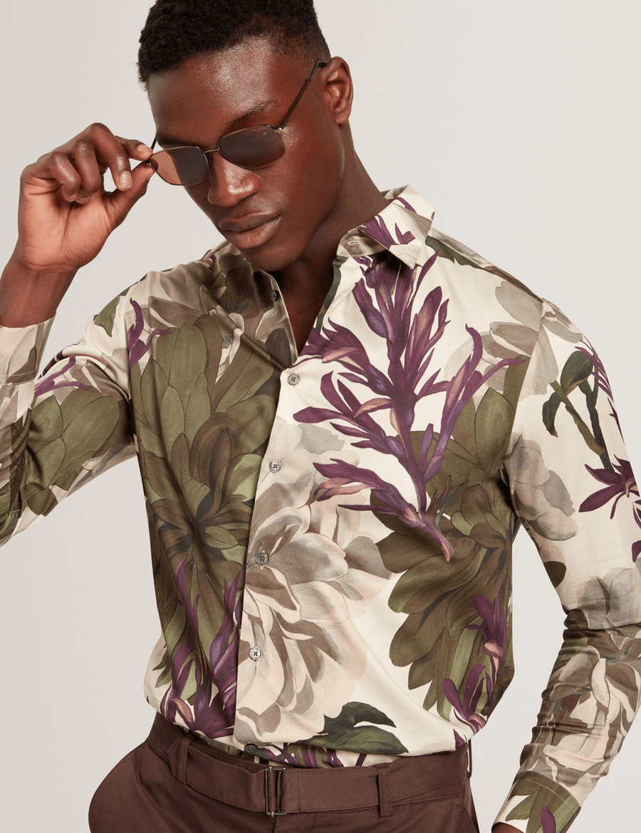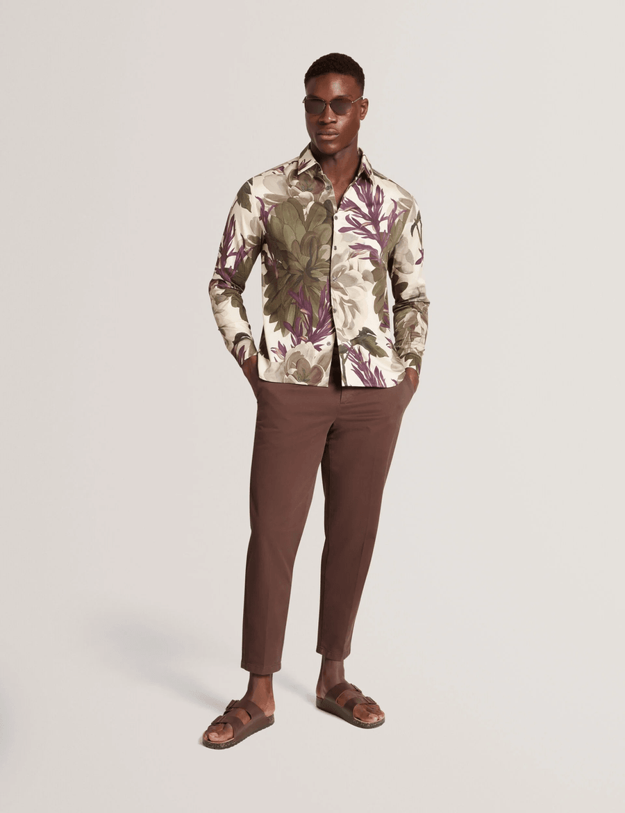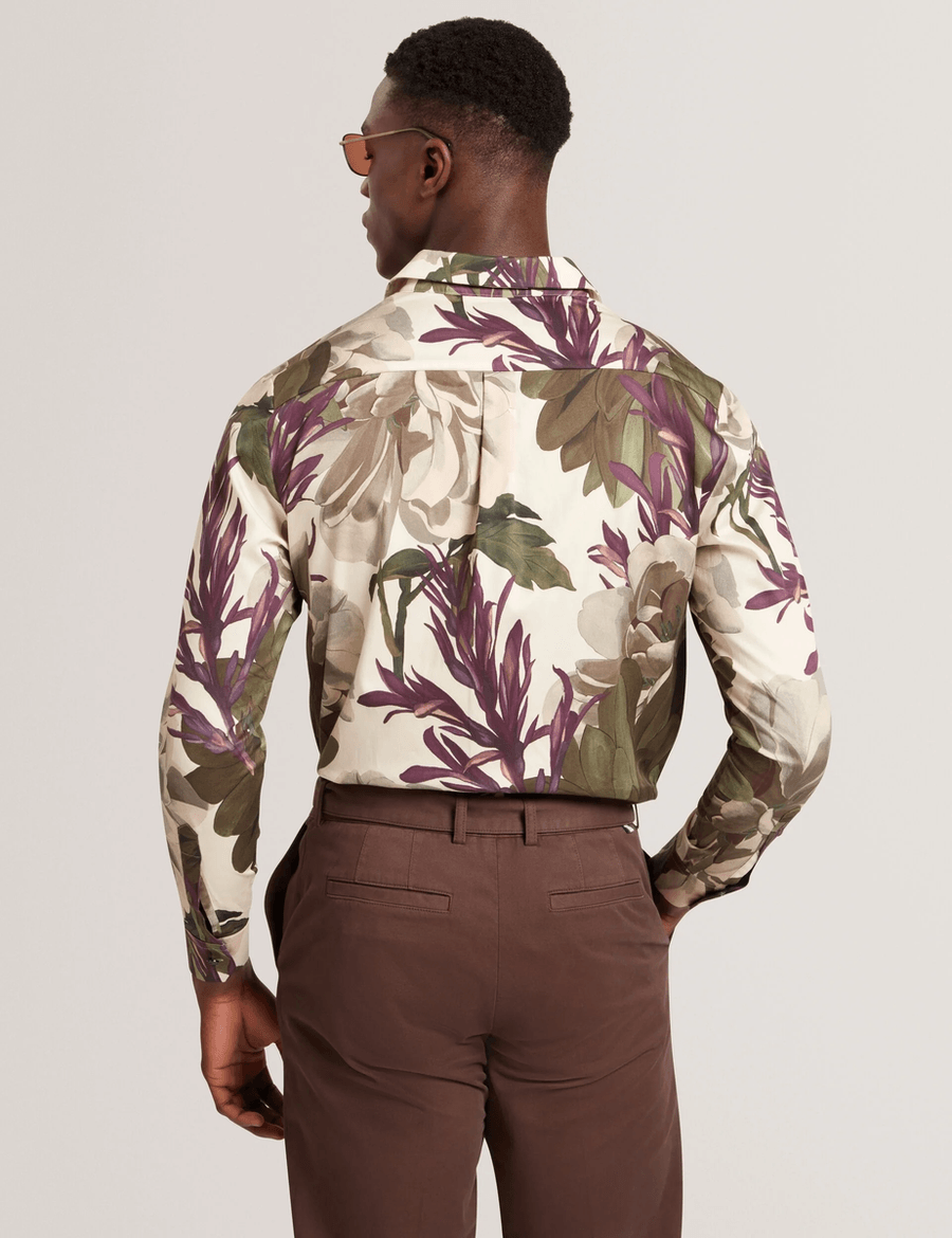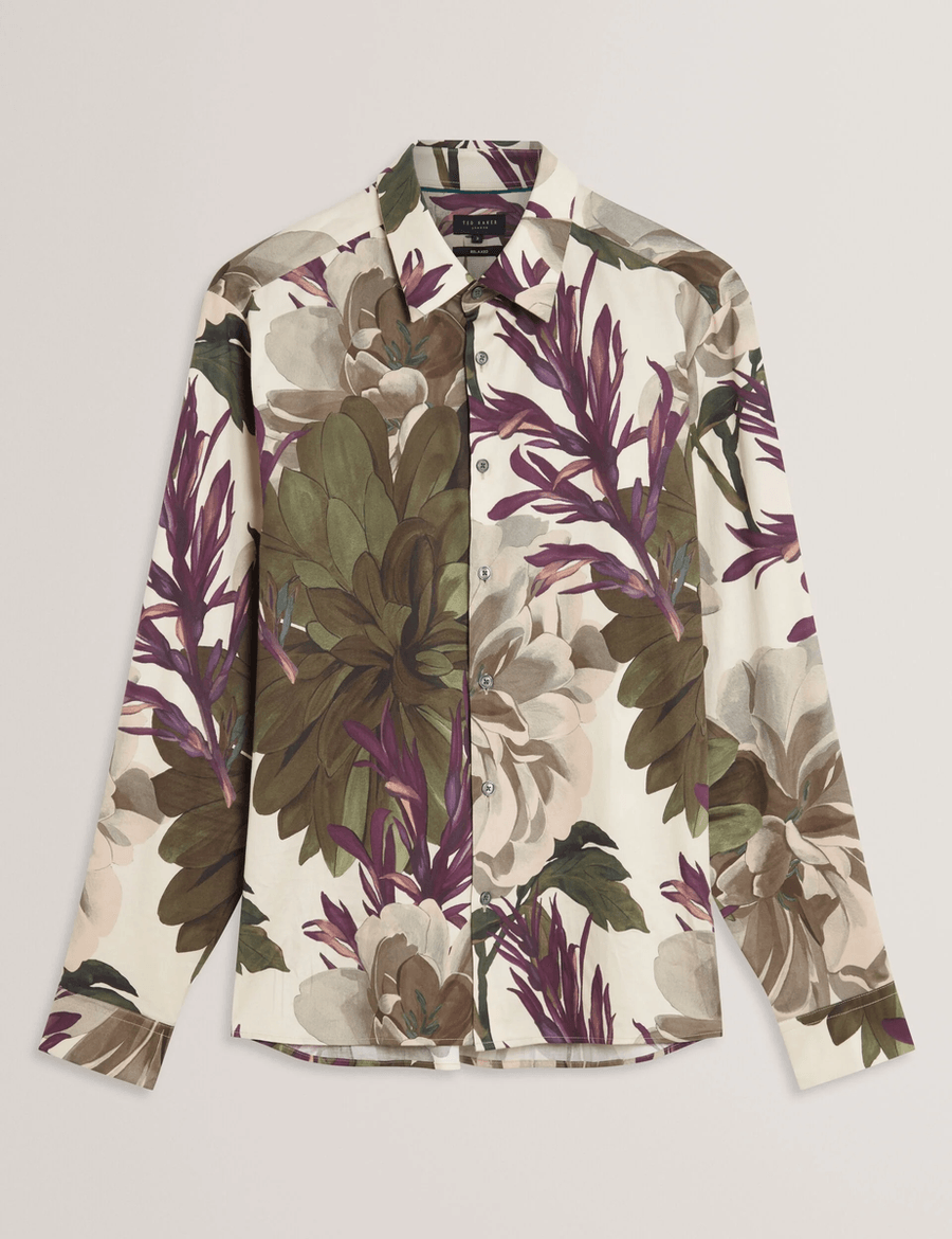 Discover the perfect blend of style and comfort with the Ted Baker WETHERB | ECRU long sleeve shirt. Adorned with a large-scale dahlia floral print, this shirt is designed for those who appreciate elegance and sophistication in their everyday attire.
