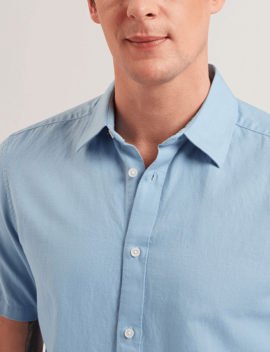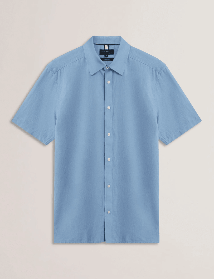Discover the perfect blend of comfort and sophistication with the Ted Baker ZEFRE | LT-BLUE short sleeve shirt. Crafted from a premium linen-cotton blend, this regular fit shirt is designed to keep you looking sharp while providing all-day comfort.
