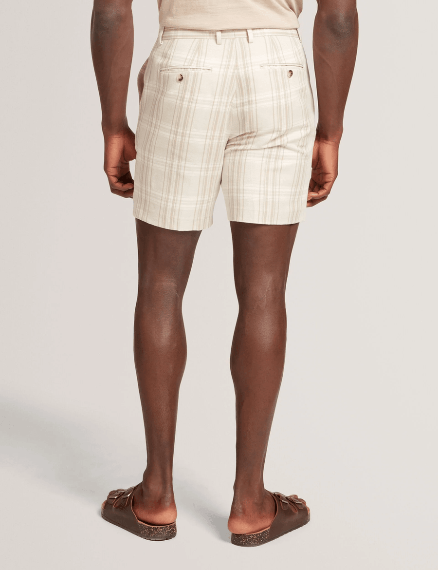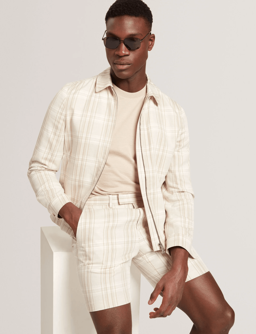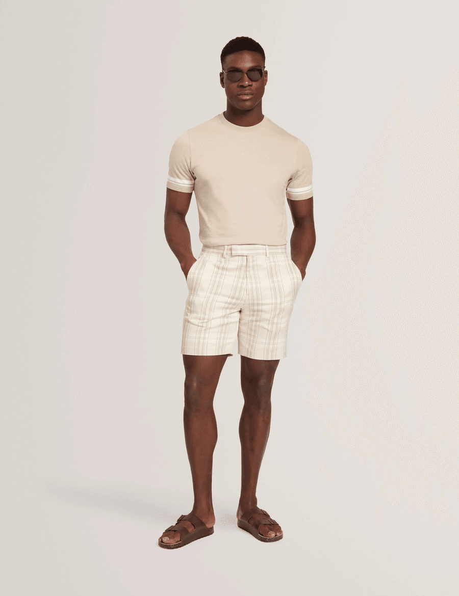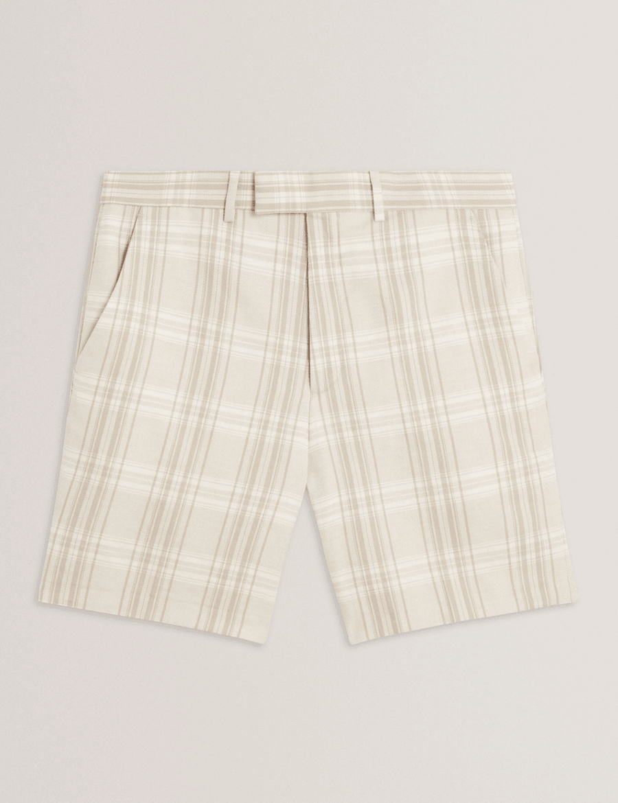 Discover the perfect blend of sophistication and casual elegance with the Ted Baker ARRIGOS | TAUPE shorts. Crafted from a light cotton-linen blend, these straight-leg shorts are designed to keep you comfortable while making a stylish statement. The tonal checked pattern adds a touch of refinement, making them ideal for both relaxed outings and more polished occasions.