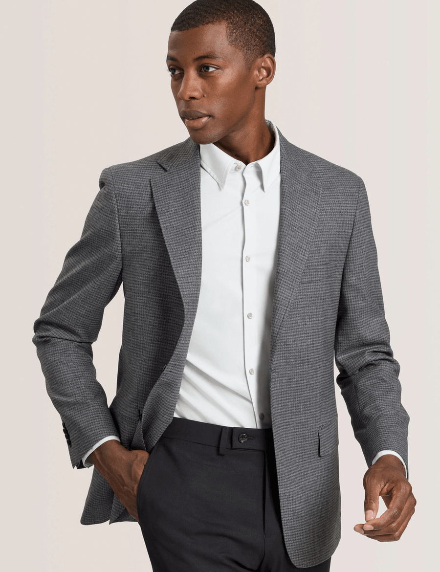 Discover the perfect blend of sophistication and comfort with the Ted Baker WELLINGTON | GREY jacket. This stunning piece features a subtle houndstooth check that effortlessly enhances your smarter outfits, making it a must-have for any stylish wardrobe.