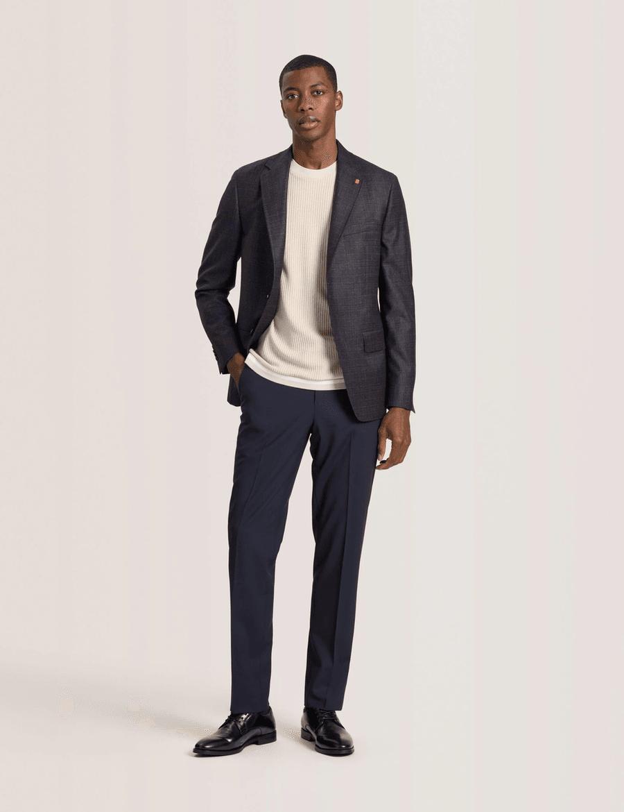 The Ted Baker WINFRED | BURGUNDY-BLUE is crafted from a soft wool blend that ensures a lightweight feel while maintaining a structured appearance. The jacket features notched lapels and a single-breasted design, making it versatile for various smart occasions. Pair it with tailored trousers for a polished look or dress it down with chinos for a more relaxed vibe.