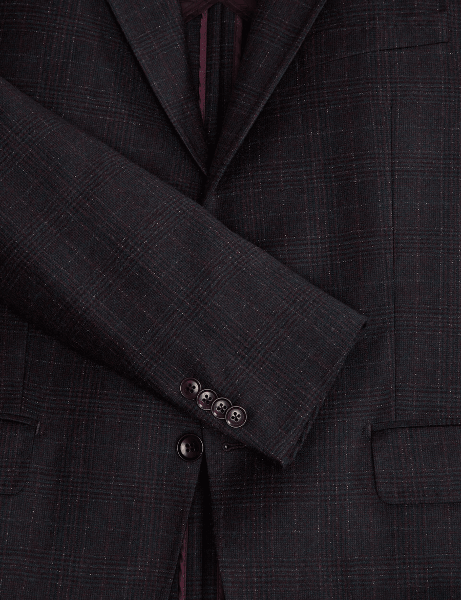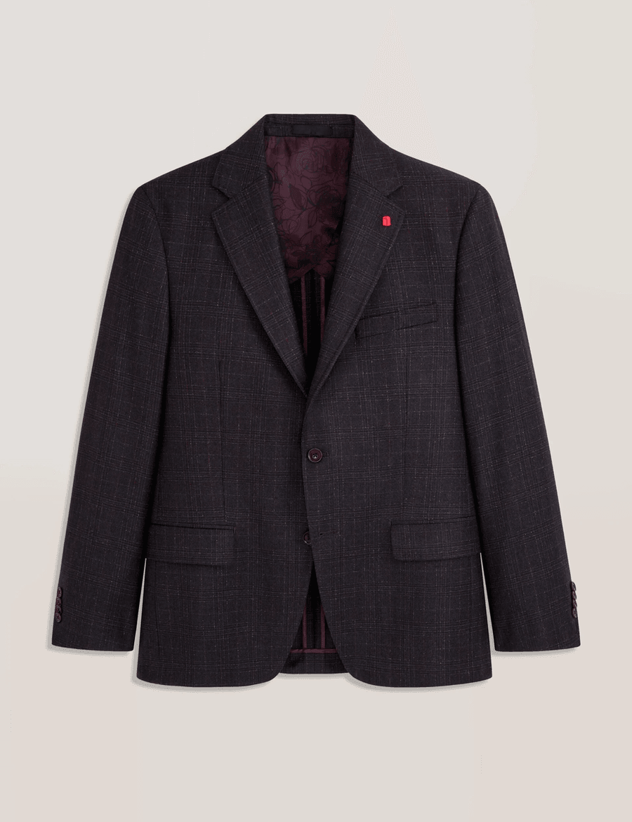 Discover the perfect blend of modern craftsmanship and classic British tailoring with the Ted Baker WINFRED | BURGUNDY-BLUE. This sophisticated check suit jacket is designed for the discerning gentleman who values both style and comfort.