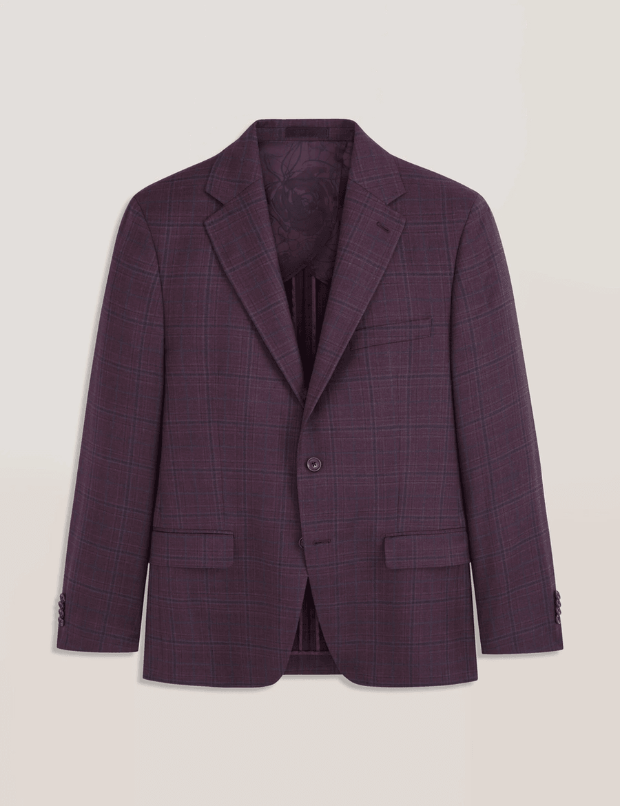 Discover the perfect blend of sophistication and style with the Ted Baker WINFRED | BURGUNDY check suit jacket. This contemporary piece redefines classic tailoring, making it an essential addition to your smart attire collection.