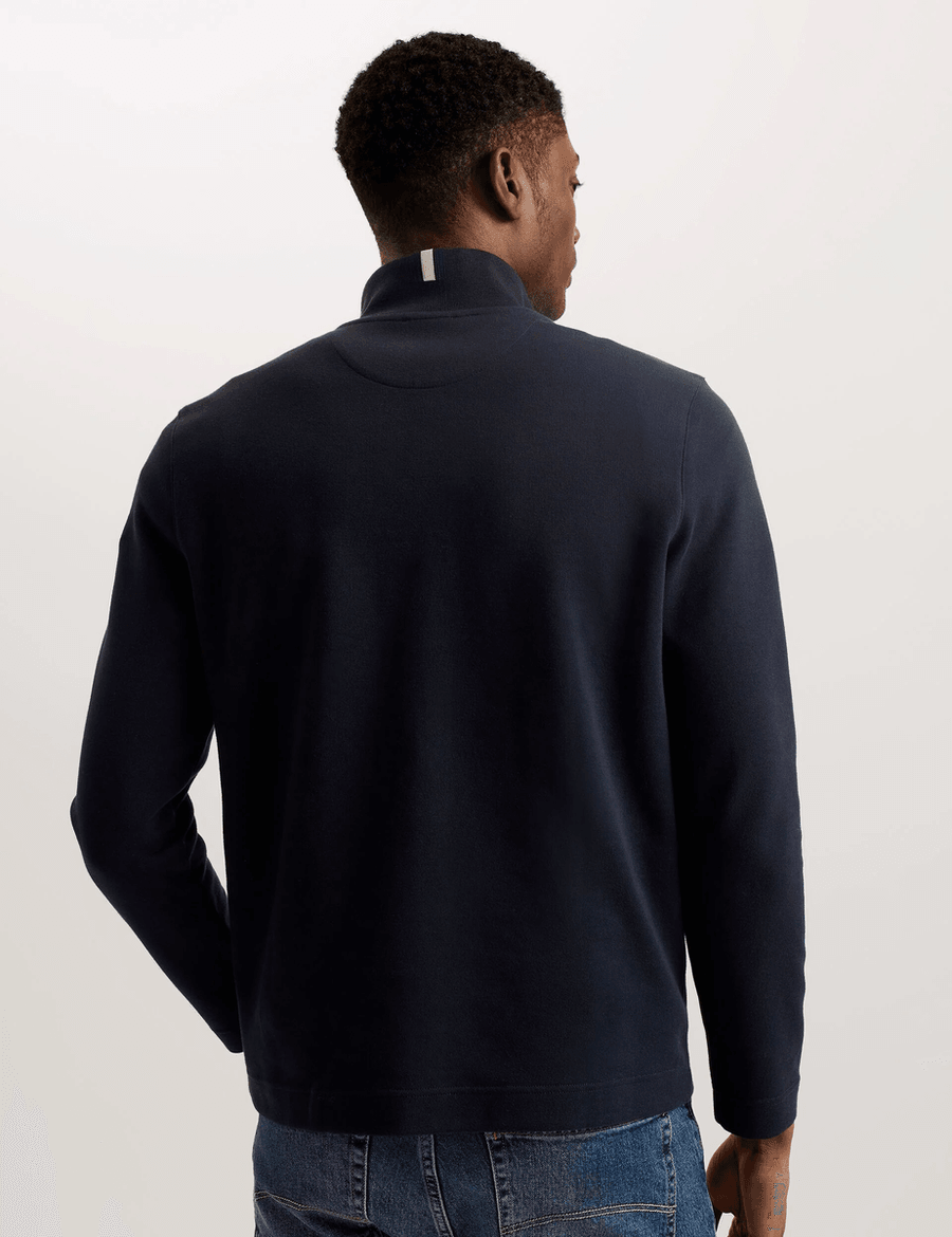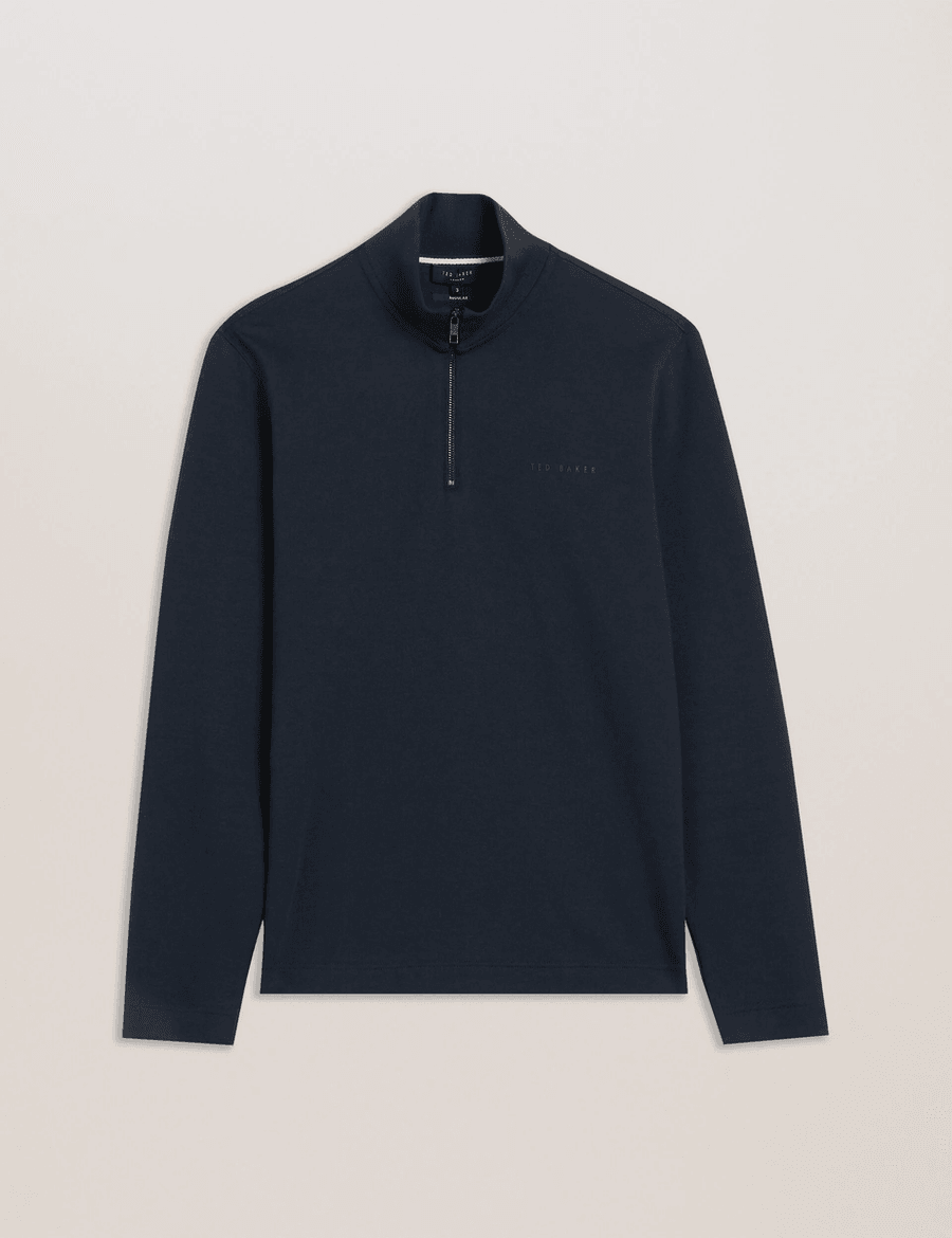 The Ted Baker ACTOS | NAVY sweatshirt features a contemporary funnel neckline and a half-zip placket, giving it a refined edge that stands out in any casual setting. Ideal for layering over your favorite tees or wearing solo, this sweatshirt strikes the perfect balance between laid-back and polished. Whether you're out for a weekend brunch or relaxing at home, this versatile piece adapts to your lifestyle effortlessly.