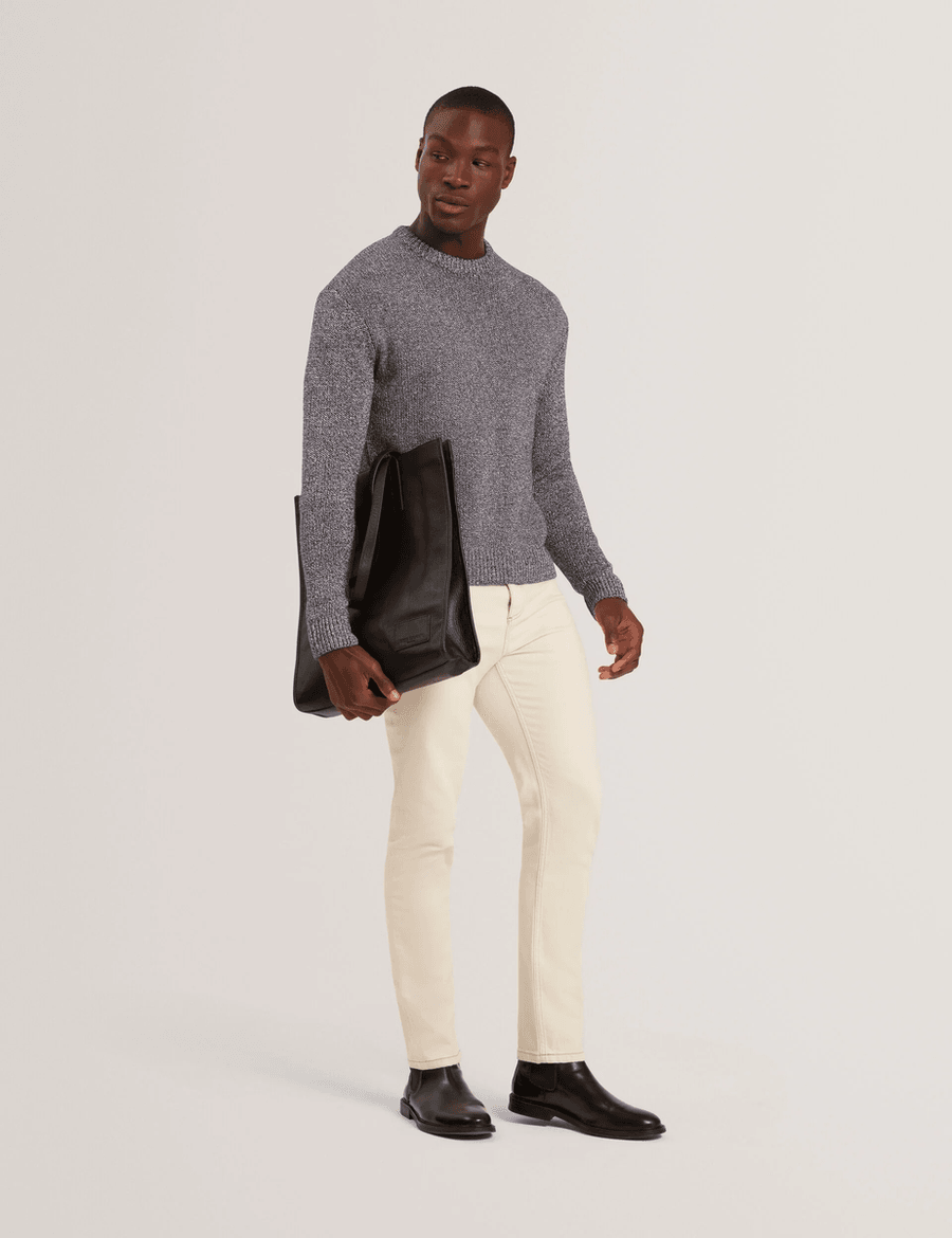 With its unique color weaves and relaxed fit, the Ted Baker CHARLIZ is designed for individuals who appreciate quality and style. Chris, who stands at 6'2" (1.87m), wears a Ted size 3, showcasing the sweater's flattering fit for various body types.