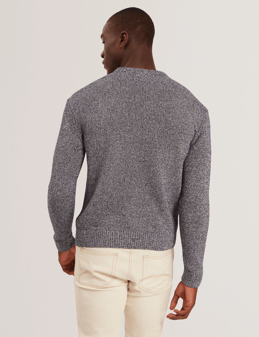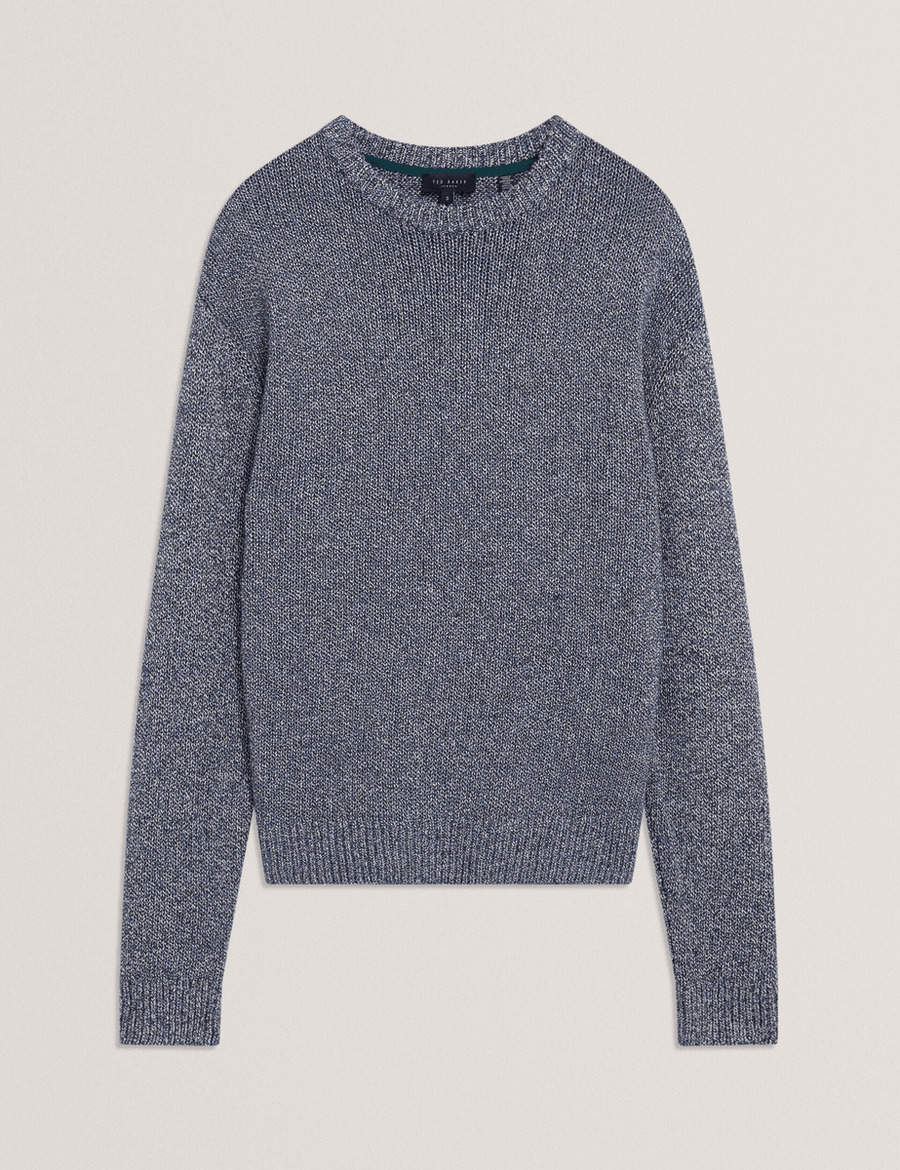 Elevate your wardrobe with the Ted Baker CHARLIZ in navy, a classic knitwear piece that seamlessly blends style and comfort. This heavyweight knit sweater is crafted with a unique multicolor weave, offering subtle texture and a chic look perfect for any occasion.