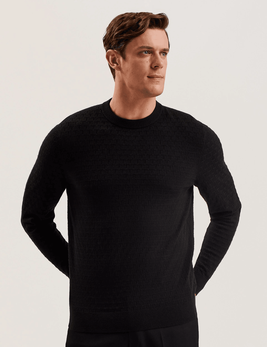 Discover the ultimate blend of style and comfort with the Ted Baker LOUNG | BLACK. This long sleeve jumper is crafted from a luxurious wool blend, ensuring you stay cozy without sacrificing sophistication. Perfect for any occasion, it pairs effortlessly with jeans or tailored trousers.